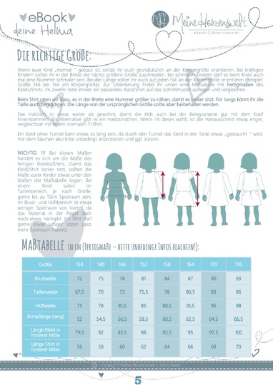 Dieses eBook deine Helma Teens beinhaltet ein Schnittmuster mit den Größen 134-176.