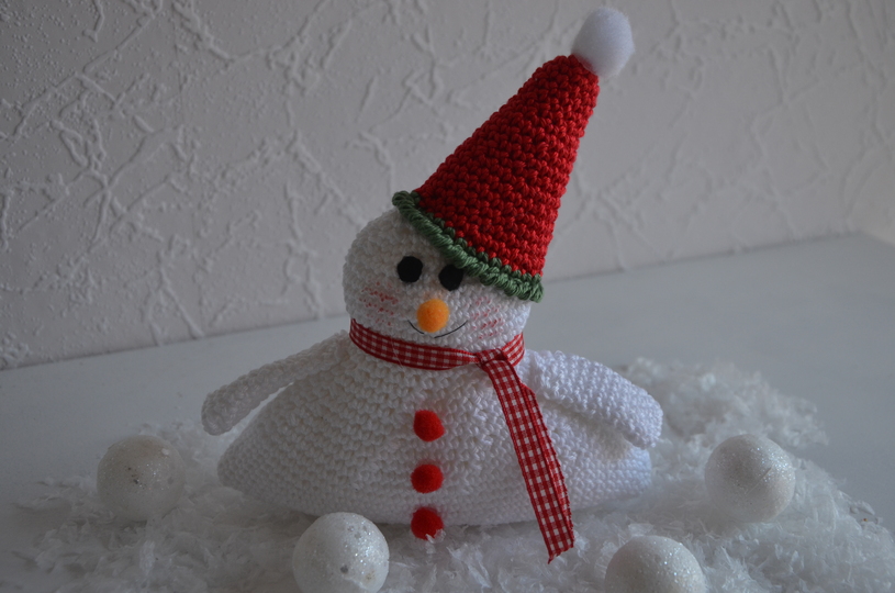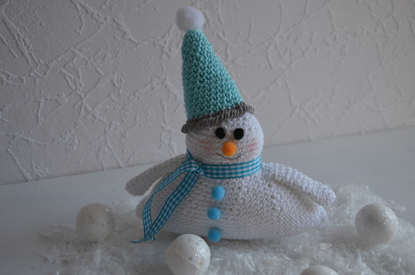 Mit Nadelstärke 3,0 und 100% Baumwolle Lauflänge 125m/50Gr. wird Olli mit Mütze ca.18 cm groß