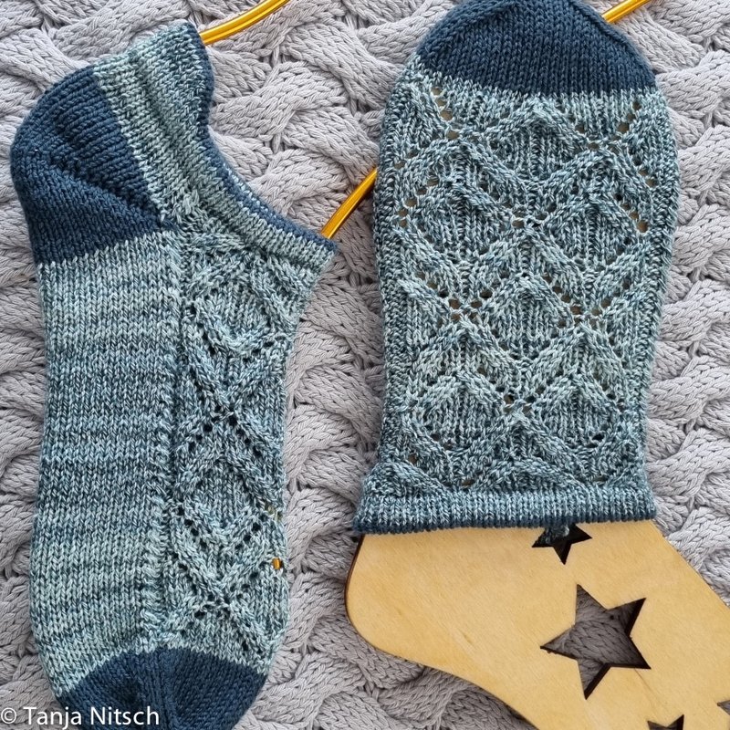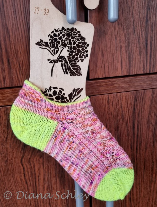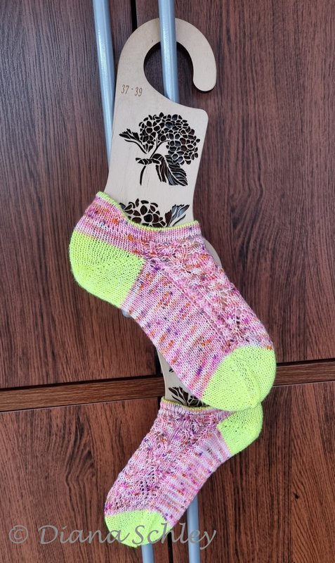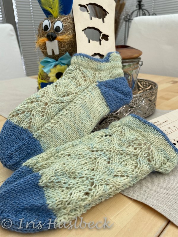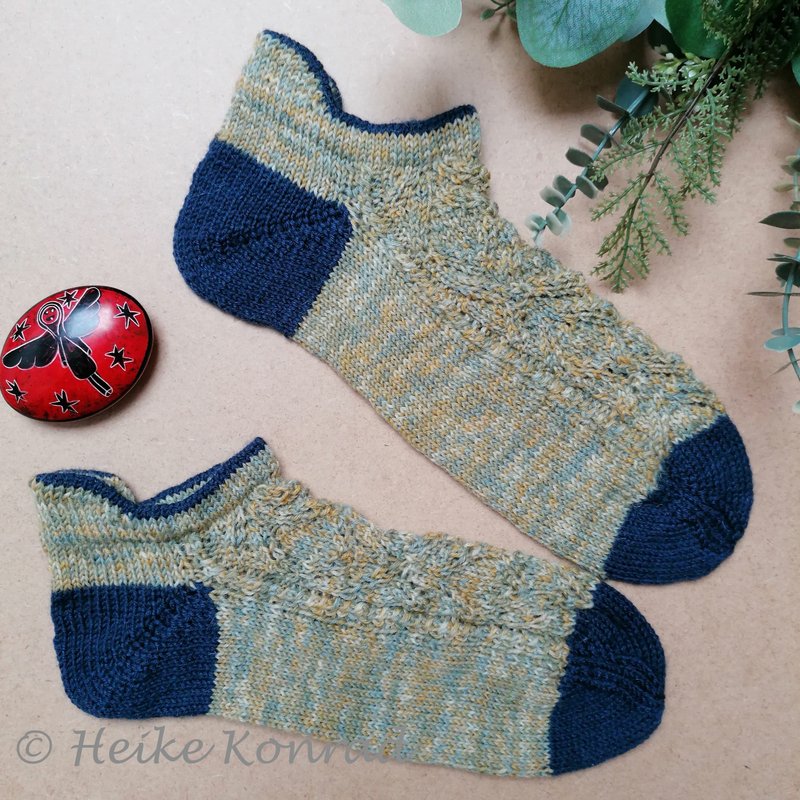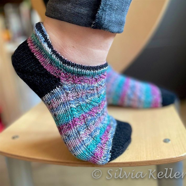 Wunderschön für den Frühling und Sommer, da kommt schon beim Stricken gute Laune auf und durch das erhöhte Bündchen verrutscht nix mehr im Sneaker.