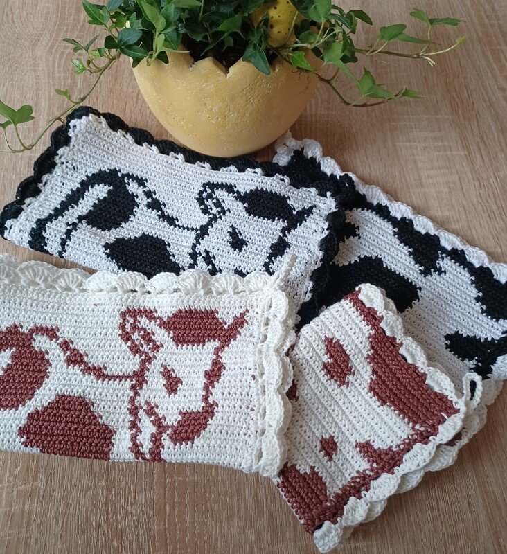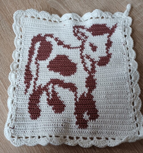 Topflappen kann man immer recht gut brauchen und kommen auch als kleines Mitbringsel gut an. Hier zeige ich Euch wie ihr Kuhliebhaber mit diesen Topflappen in Tapestry Technik beschenken und erfreuen könnt oder euch selbst diese Kuhfleckel werkelt.