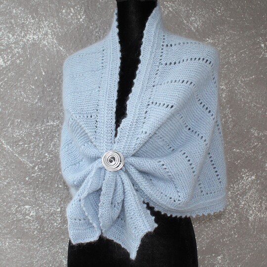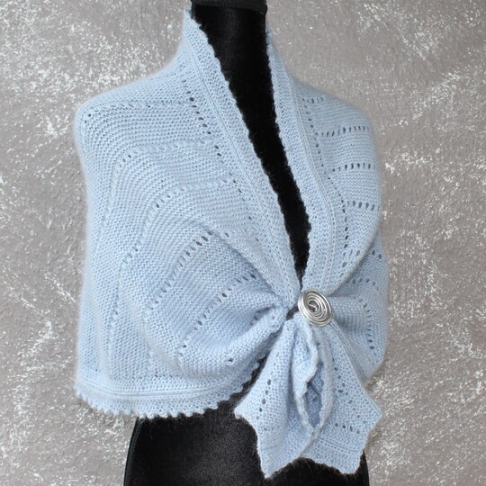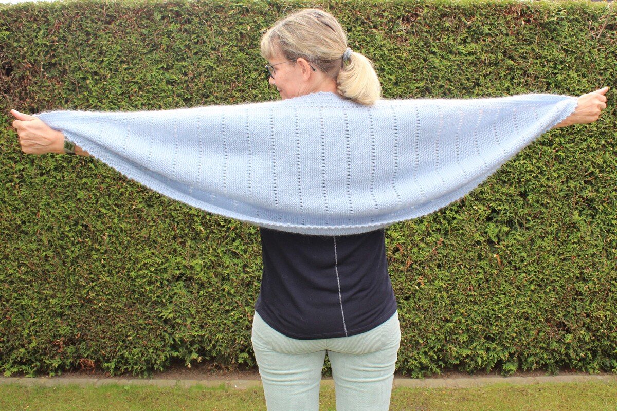 Als Schal oder Stola zu tragen. Zuerst wird zugenommen, dann gerade gestrickt und im 3. Schritt wieder abgenommen.
