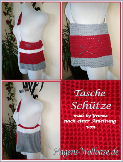 Die Tasche "Schütze" wurde aus 100 % Baumwolle gearbeitet, z. B. Rellana Adina oder Alize Bahar.