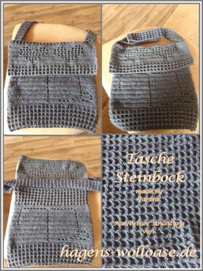 Die Tasche "Steinbock" wurde aus 100 % Baumwolle gearbeitet, z. B. Rellana Adina oder Alize Bahar.