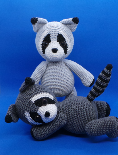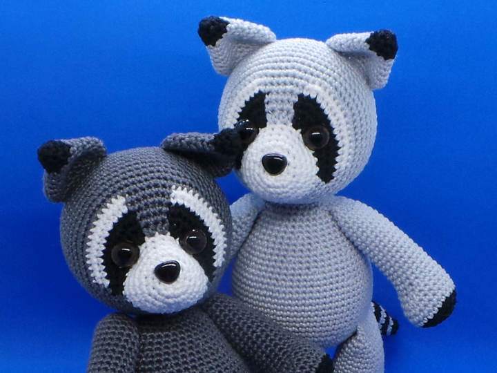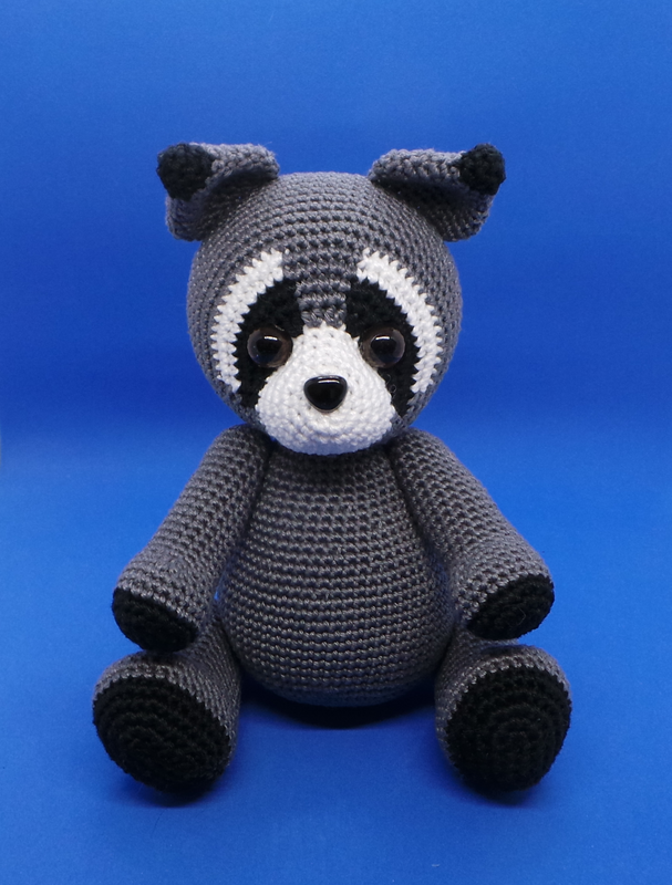 Du erhältst eine Anleitung mit vielen Bildern, die 20 Seiten lang ist. Waschbär Waldi kann mit oder ohne Gelenke gehäkelt werden. Es sind beide Versionen in der Anleitung beschrieben.