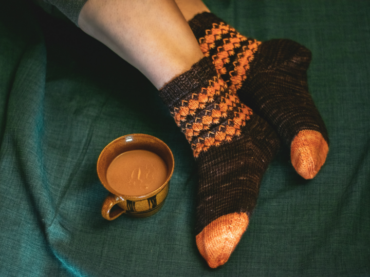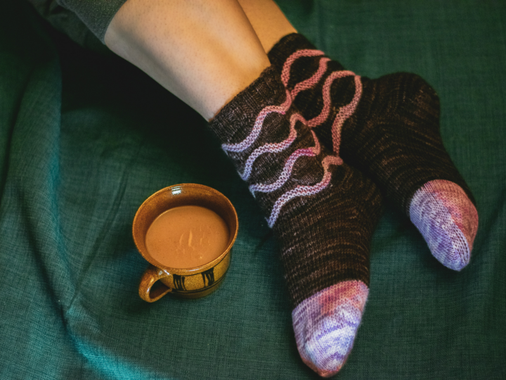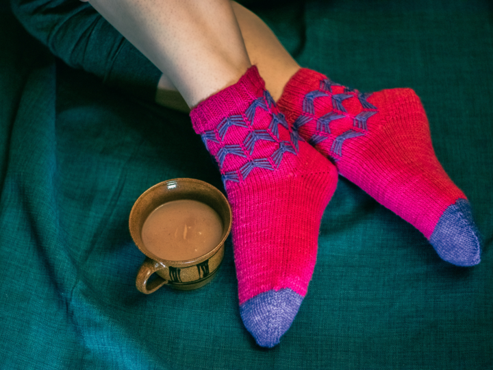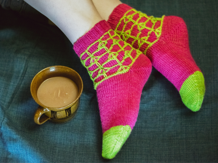 Das E-Book enthält zudem Erklärungen für die Shadow-Wrap-Ferse sowie die Bandspitze und enthält auch eine Sockentabelle.