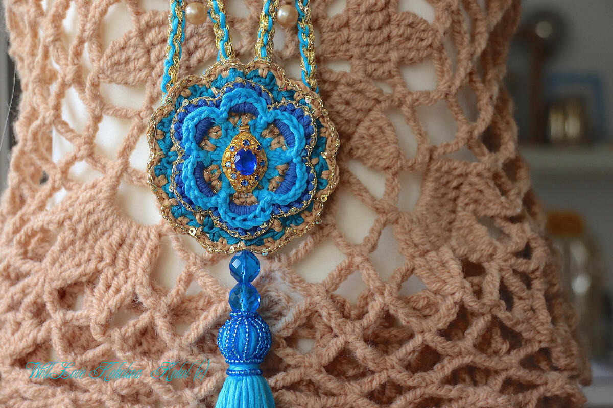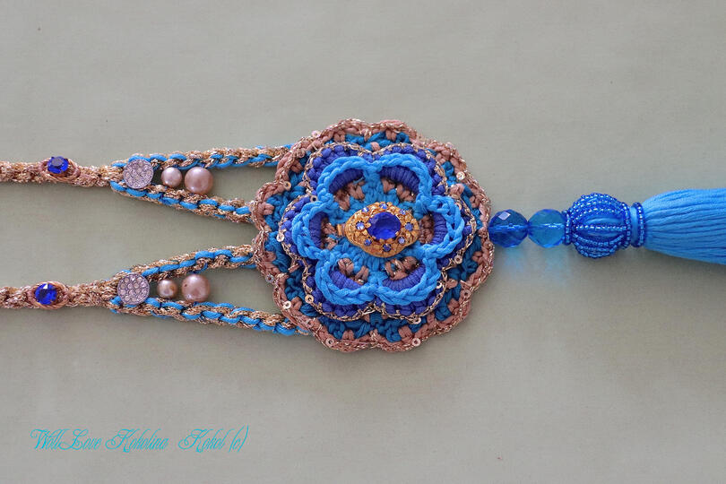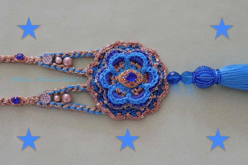 Für die Blume die Farben: Türkis 046 / Blau 204 / Camel 233 / Petrol 093
