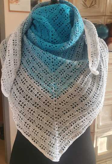 Das Tuch wurde ca 185x95cm groß, mit einem Verbrauch von 1000m und NS 4.0