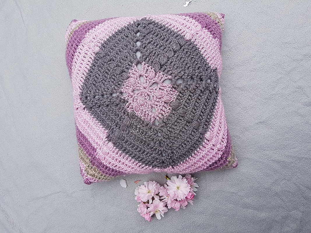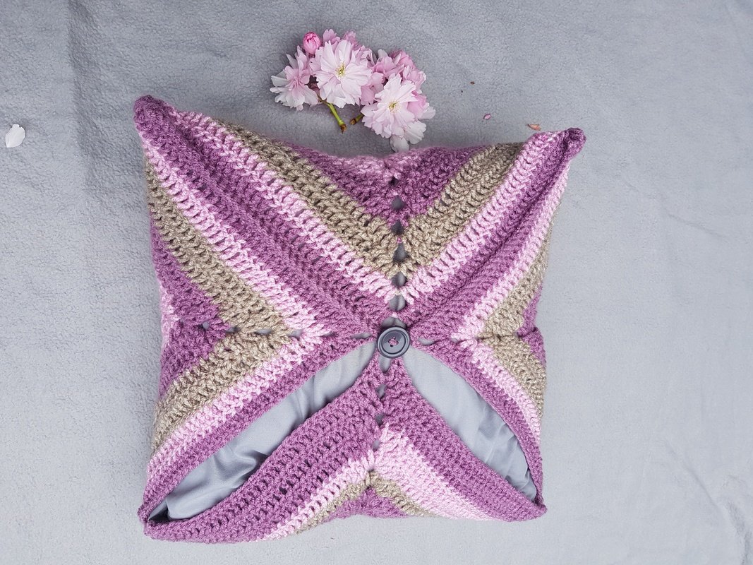 "Flieder-Liebe" ist ein einfach zu arbeitendes Kissen mit raffiniertem Verschluss auf der Rückseite.
