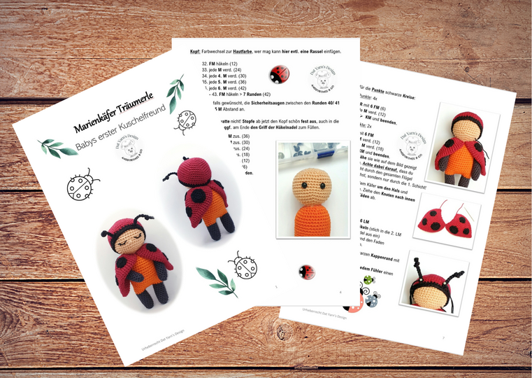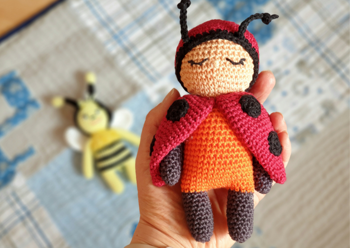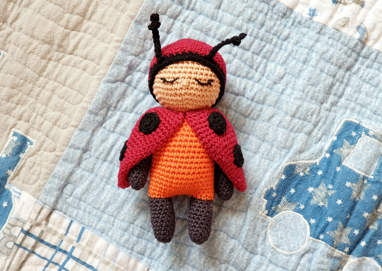 Hier kannst du dir den süßen Marienkäfer Träumerle häkeln. Er ist gerade groß genug für kleine Patschehände.