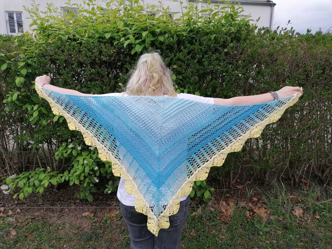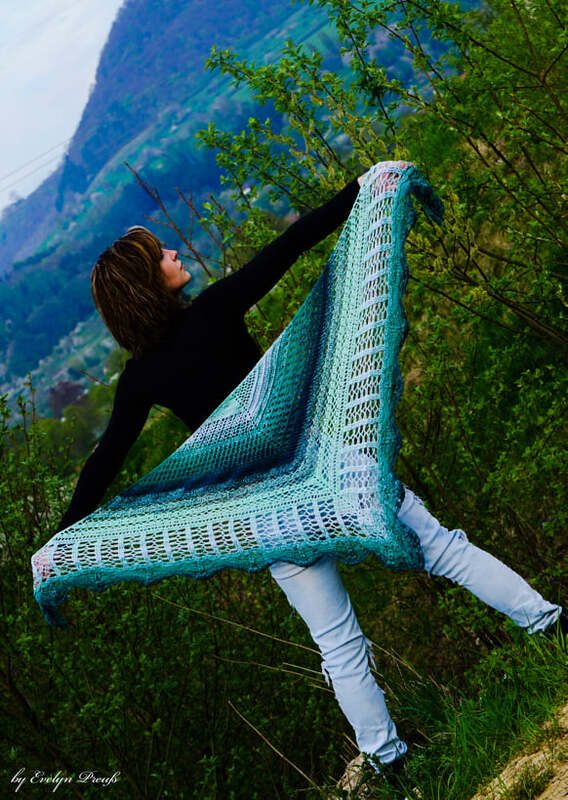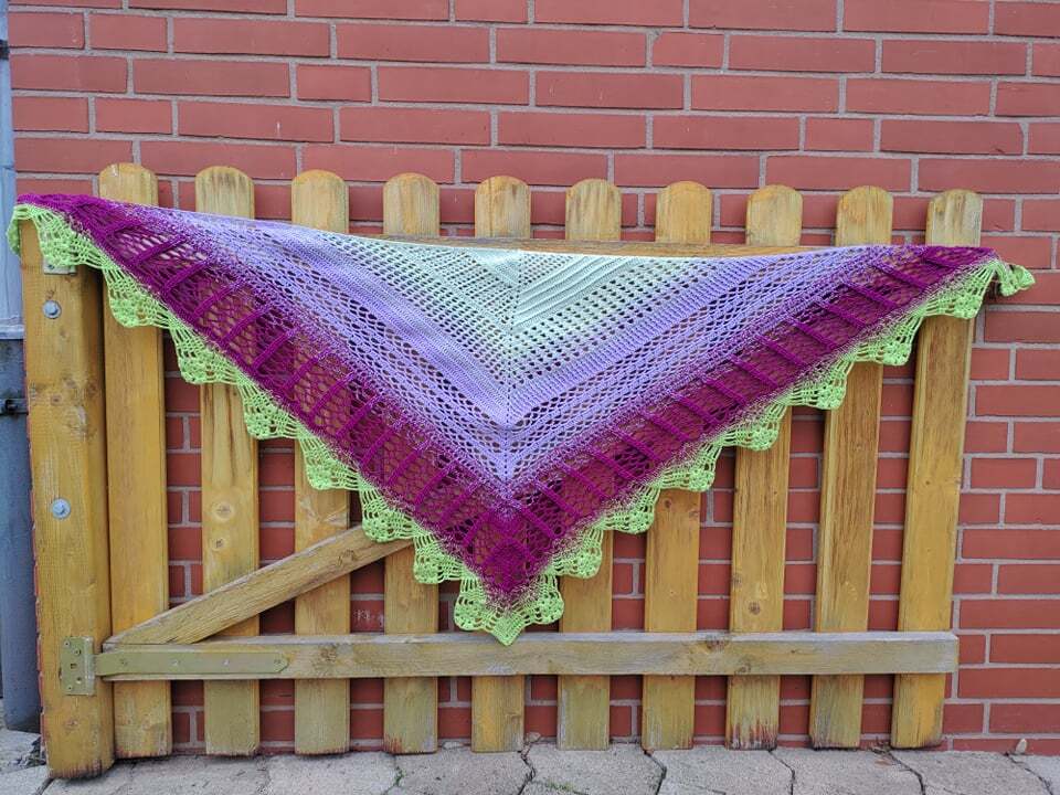 Für das Tuch habe ich Bobbel "Spring" von Lieblingswolle verwendet. 1000LL 3Fädig und mit