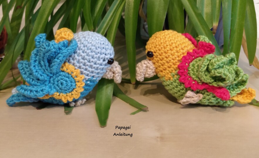 Du findest hier eine Häkelanleitung für einen kleinen Papagei.