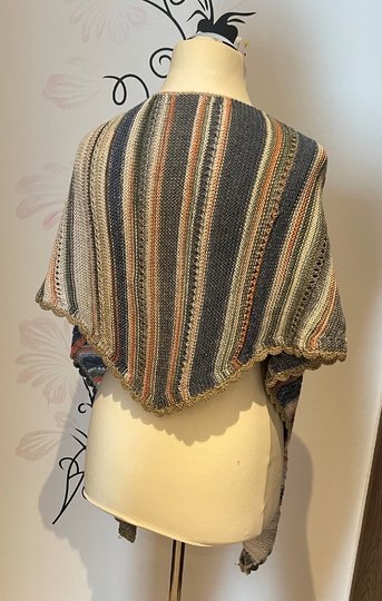 Das Tuch wird von Ecke zu Ecke in einem Stück gestrickt. Zuerst strickst du Zunahmen, bis die gewünschte Länge und Tiefe erreicht sind, danach werden aus den Zunahmen Abnahmen.