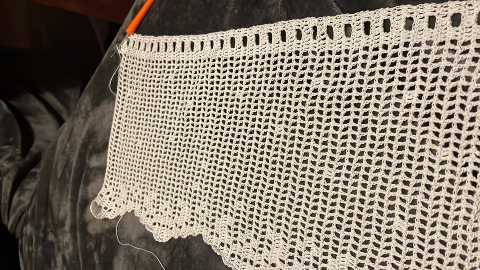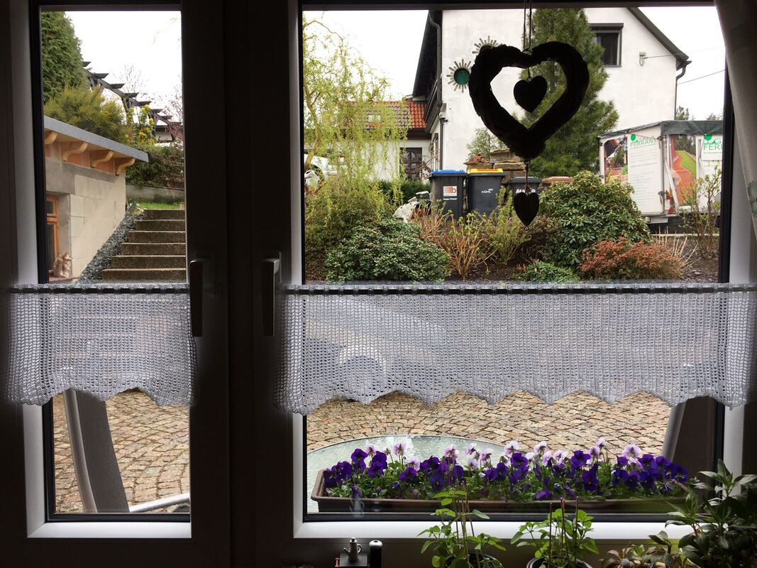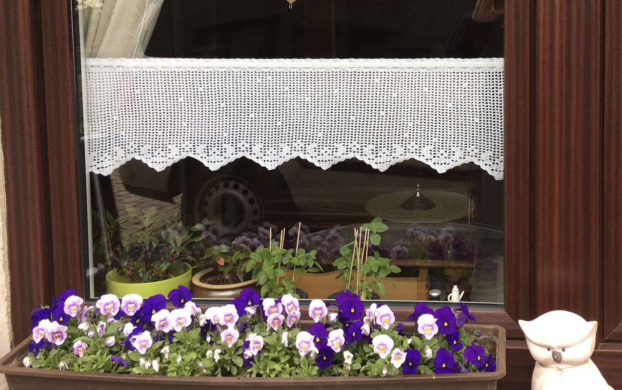 Die Anleitung ist einfach erklärt. Die Gardine besteht aus Luftmaschen und Stäbchen.