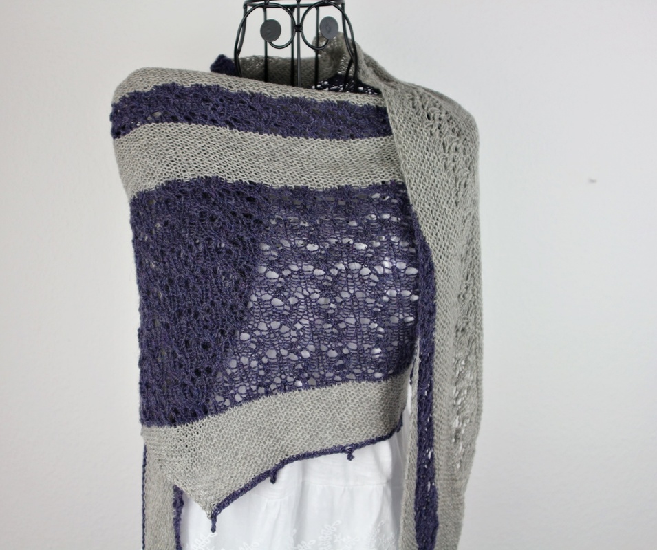Modern, klar und ausdrucksstark – das asymmetrische Dreieckstuch „Space“ verbindet ruhige kraus rechte Partien mit einem strukturierten Lace-Muster und einem feinen Picot-Abschluss. Die diagonale Konstruktion sorgt für eine besondere Formgebung und verleiht dem Tuch eine elegante, zeitlose Ausstrahlung.