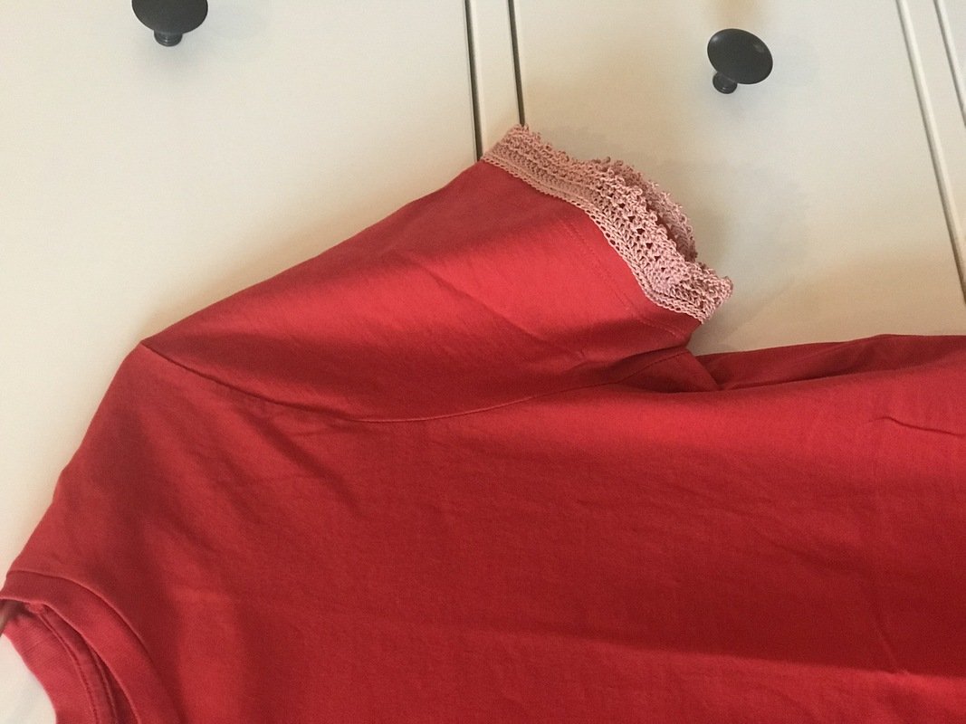 Das geht ganz schnell und einfach mit dieser feinen Häkelborte. Sie ist gar nicht schwer zu häkeln und im Nu entsteht ein ganz neuer T-Shirt Look. Ausserdem bist du so ganz im Sinne der Nachhaltigkeit unterwegs - deine alten Shirts werden durch dich völlig neu aufgewertet.