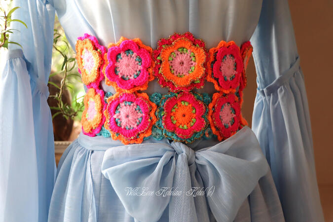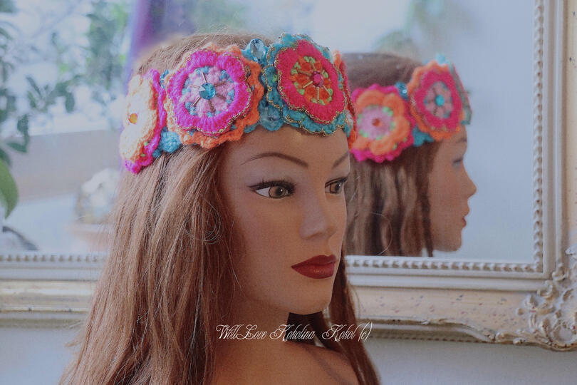 Auch tragbar als Gürtel und Halsschmuck - am Kopf über die Stirn oder weiter nach oben – je nach Frisur und Geschmack