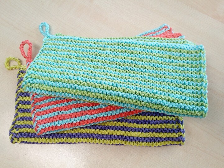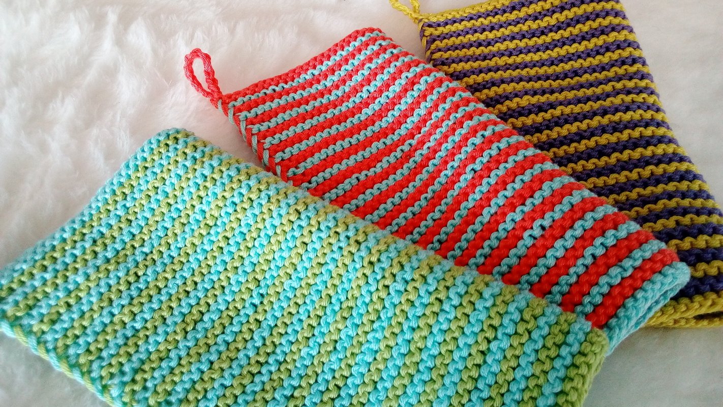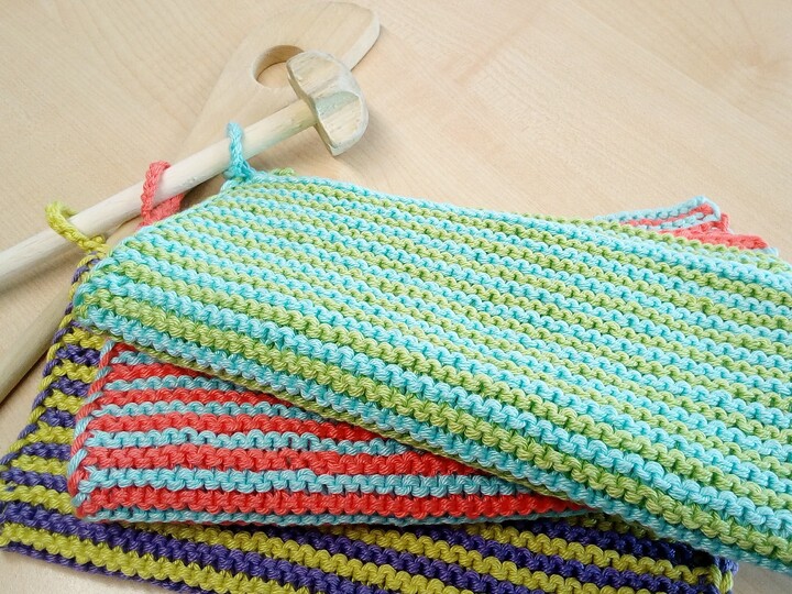 Nach dieser Anleitung kannst Du schnell und einfach herrlich bunte Küchenlieblinge selber stricken. Mit diesen fröhlichen I-Tüpfelchen gelingt Dir das Kochen oder Spülen im Handumdrehen.