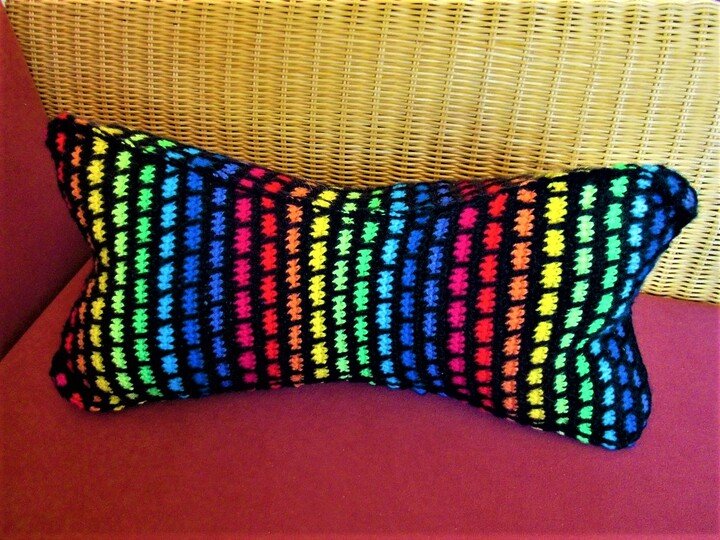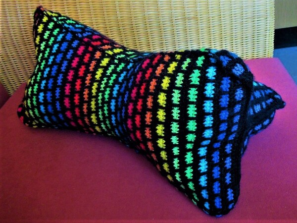 Meist findet man im Netz Nähanleitungen für Leseknochen. Der hier vorgestellte Leseknochen wird gehäkelt. Dabei ist er hervorragend geeignet, um viele bunte Wollreste zu verhäkeln.