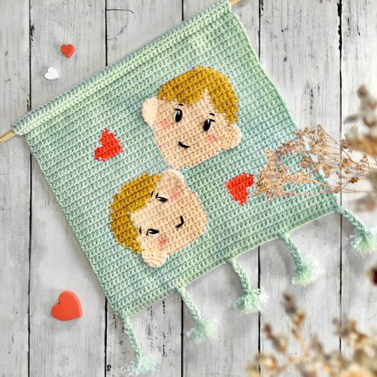 Mit Hilfe meiner Anleitung kannst du einen wundervollen Wandbehang mit dem Motiv des Sternzeichens Zwillinge anfertigen, der jede Zimmerwand aufwertet. Dabei kannst du wählen, ob die Zwillinge zwei Jungs, zwei Mädchen oder ein Mädchen und ein Junge darstellen sollen. Mit der Auswahl der Haut- und Haarfarbe kannst du sie zudem weiter personalisieren.