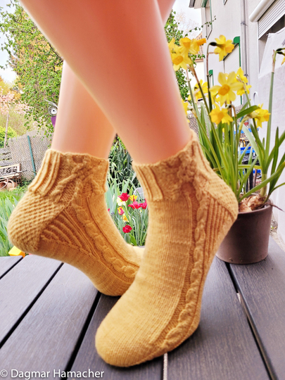 Du benötigst Sockengarn mit einer Lauflänge von 400-420m/100g Deiner Wahl.