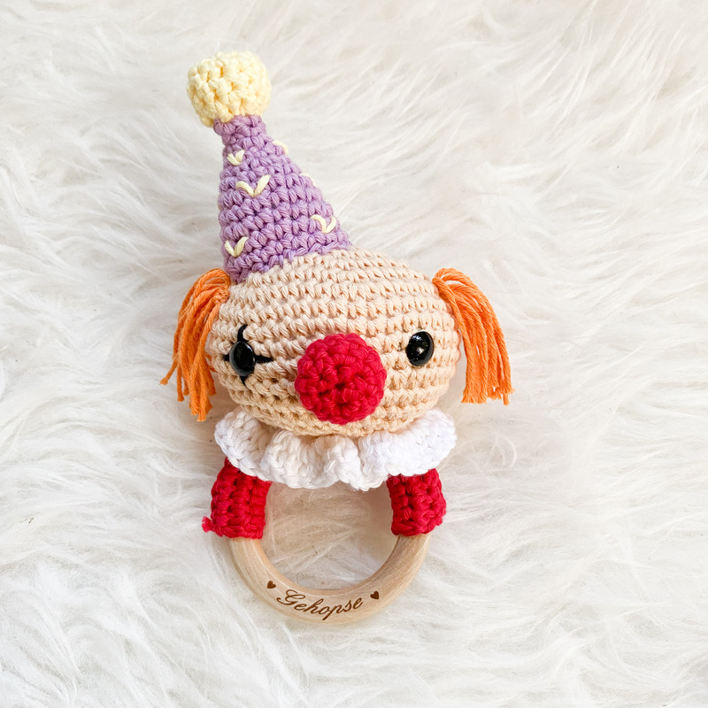 Mit dieser Häkelanleitung kannst du deine eigene süße Clown-Rassel häkeln.