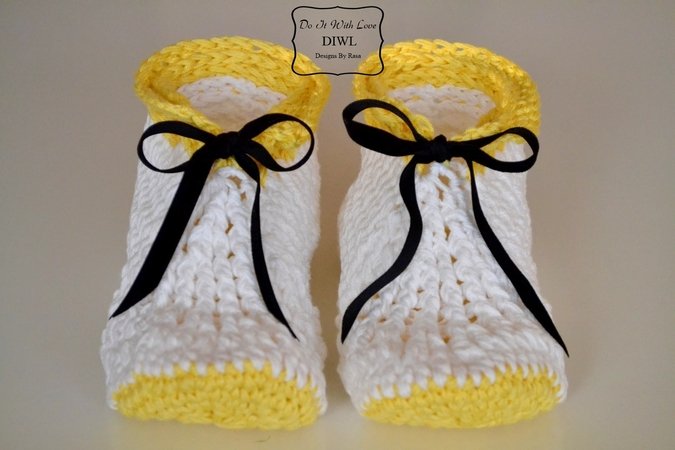 DIWL (e-book) Anleitung besteht aus professionell bebilderter Anleitung in *Deutscher und Englischer* Sprache zum Häkeln von Frauen Booties.