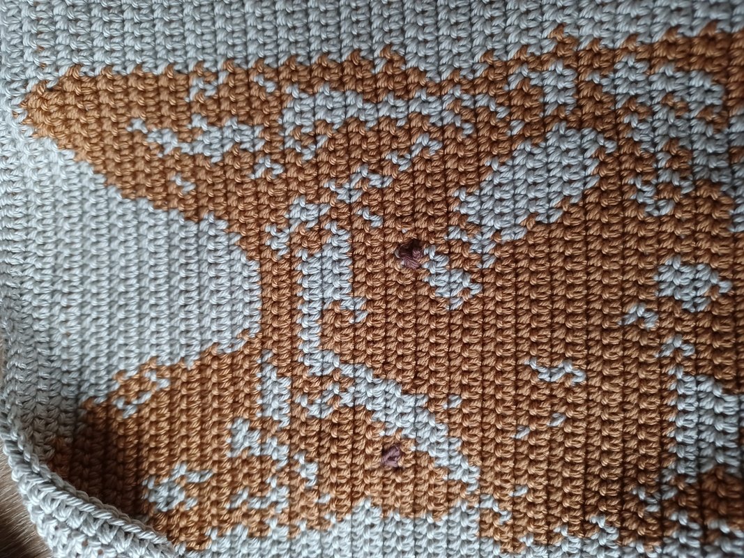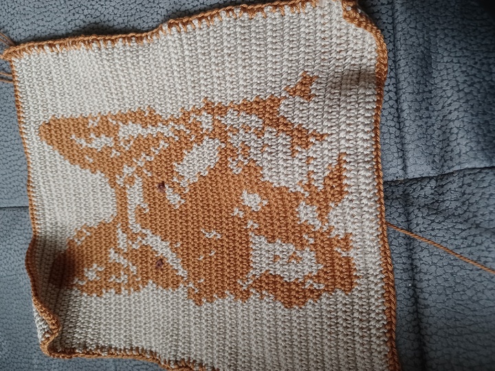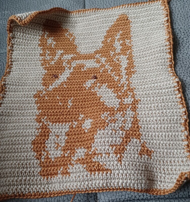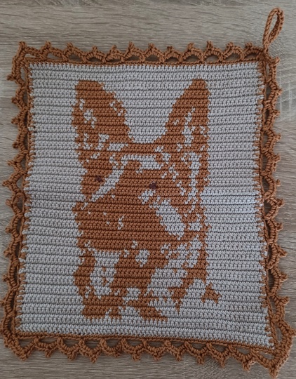 Mit der hier angebotenen Anleitung und dem von mir verwendetem Material wird der Topflappen ein wenig größer als normal, was zum einen vom doppelten Verhäkeln des Garnes , aber auch vom Motiv abhängig ist, hier bekommt ihr einen Topflappen von 30 cm x 30 cm.
