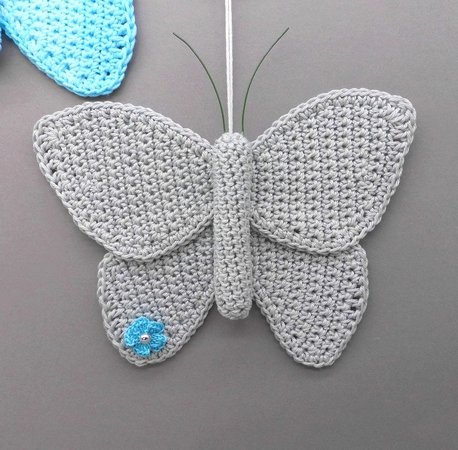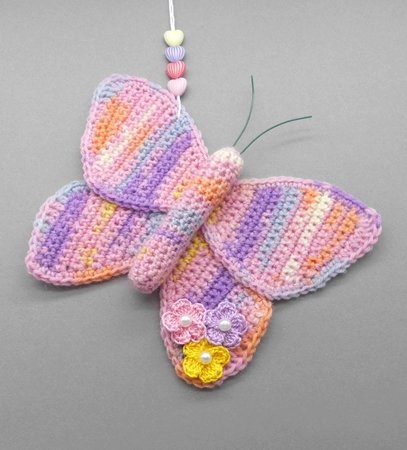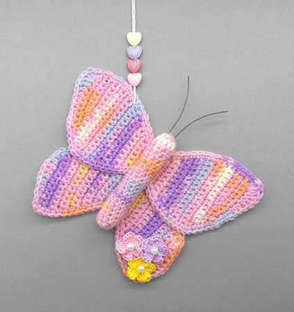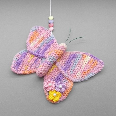 Die PDF Datei umfasst zusätzlich zur schriftlichen Häkelerklärung auch die Häkelschriften für die Schmetterlingsflügel und die kleine Blume, sowie viele detaillierte und erklärte Schritt für Schritt Fotos, damit Du den Schmetterling Dekohänger ganz einfach erfolgreich nachmachen kannst.