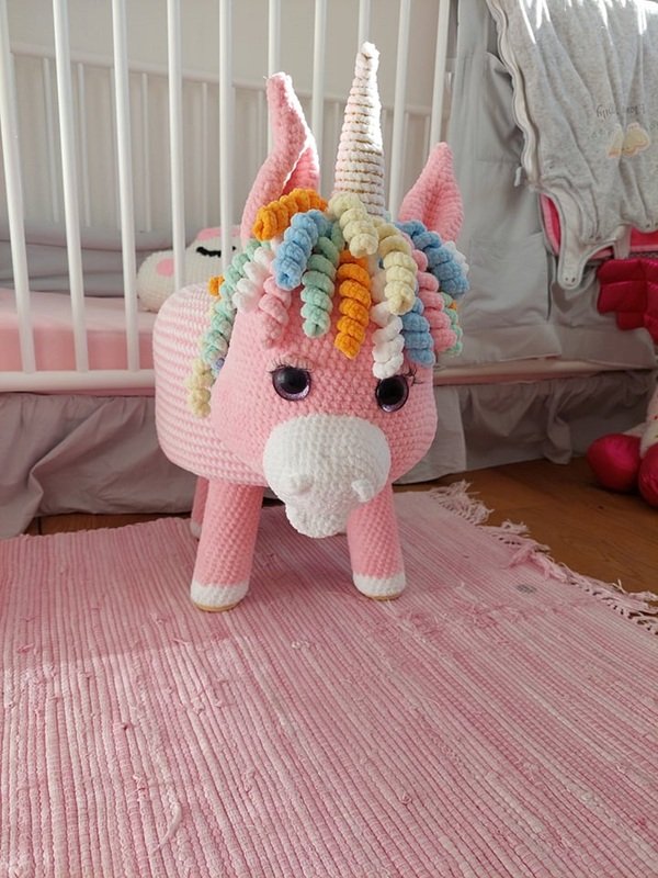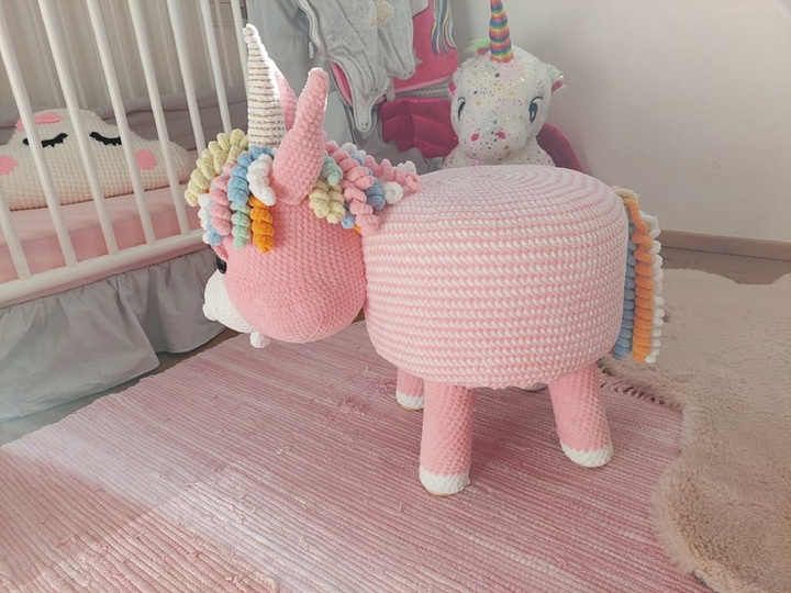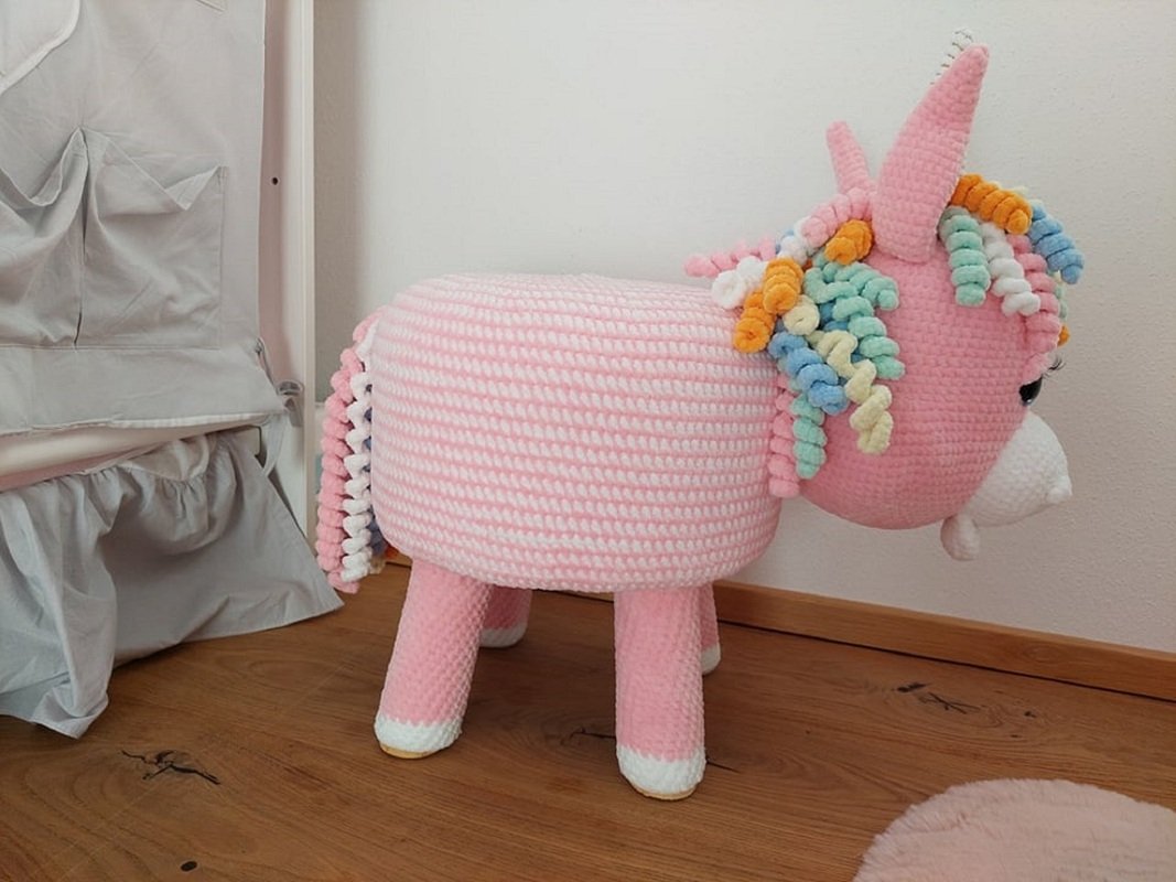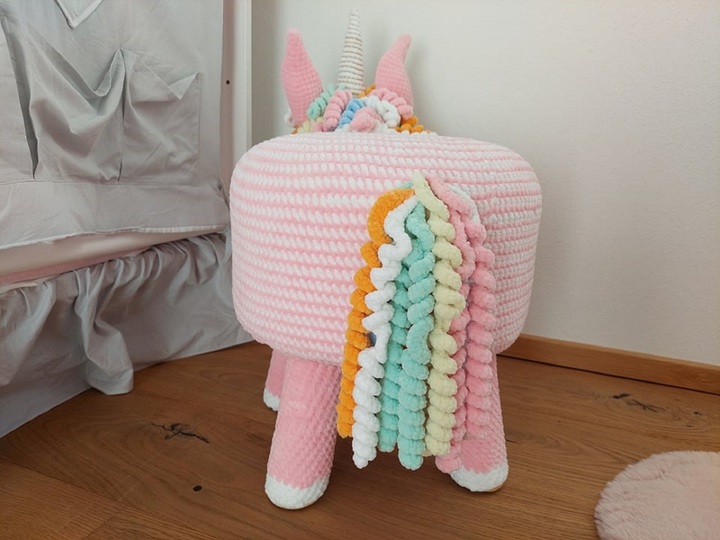 Dieser süsse Einhorn Hocker wird jedes Kinderherz erfreuen,