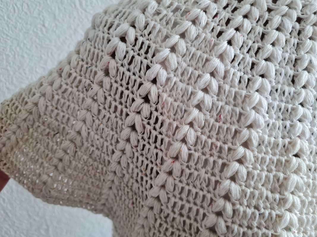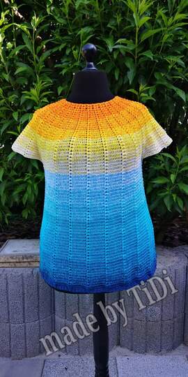 Das Sommershirt "Cosmos" wir als Rundpasse von oben nach unten ohne Nähte gehäkelt. Es ist blickdicht und somit auch ohne "was drunter" tragbar. Ihr könnt das Shirt gerade oder in A-Form häkeln. Lang oder kurz, ganz wie ihr es mögt. Das Muster ist ganz einfach nachzuhäkeln und wer Büschelmaschen mag, wird dieses Shirt lieben.