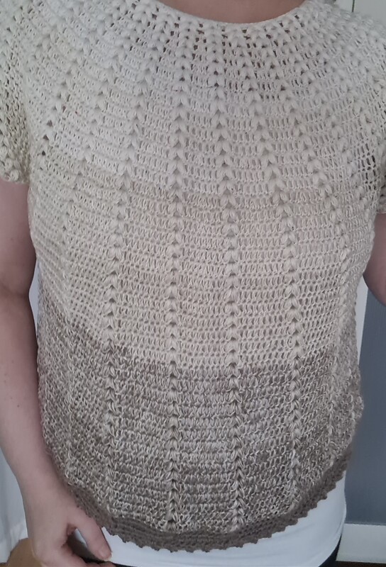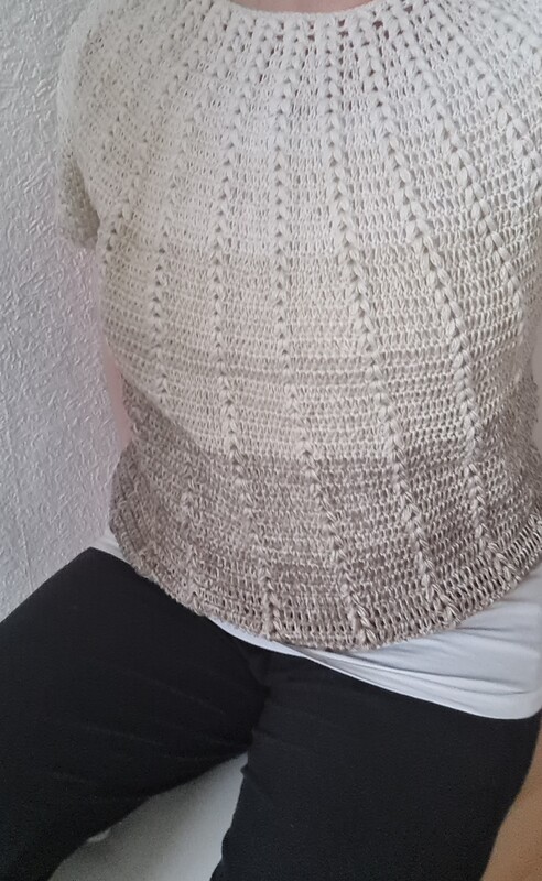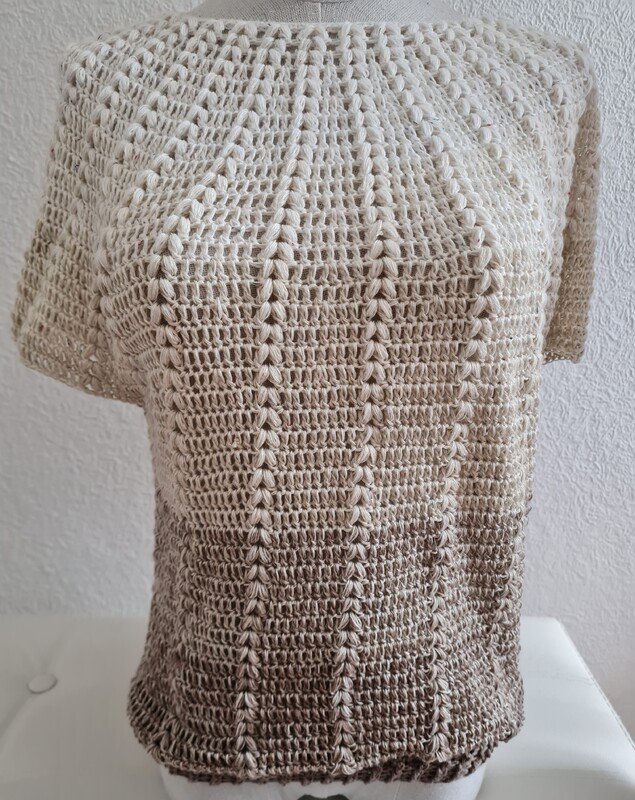 Das abgebildete Shirt wurde in Größe 40/42 gearbeitet.