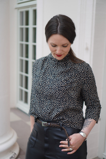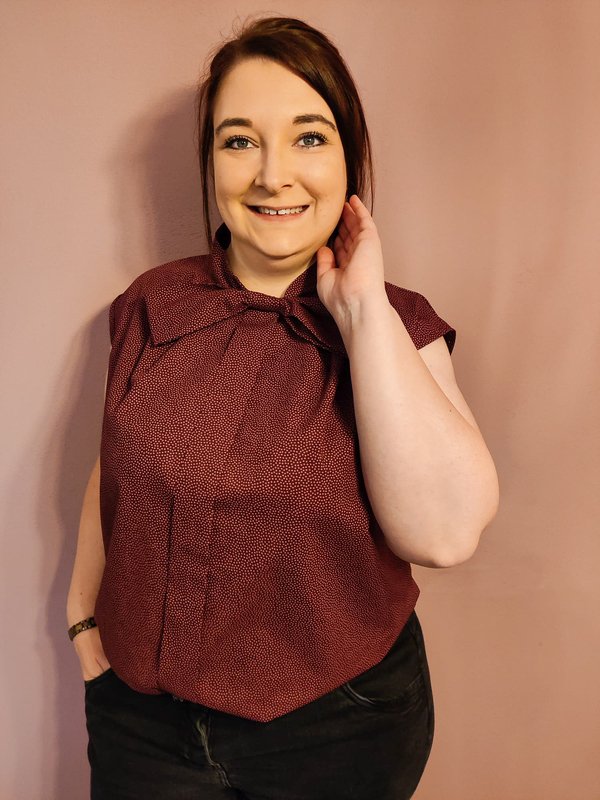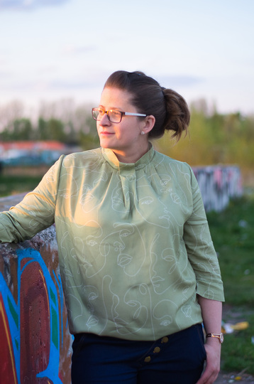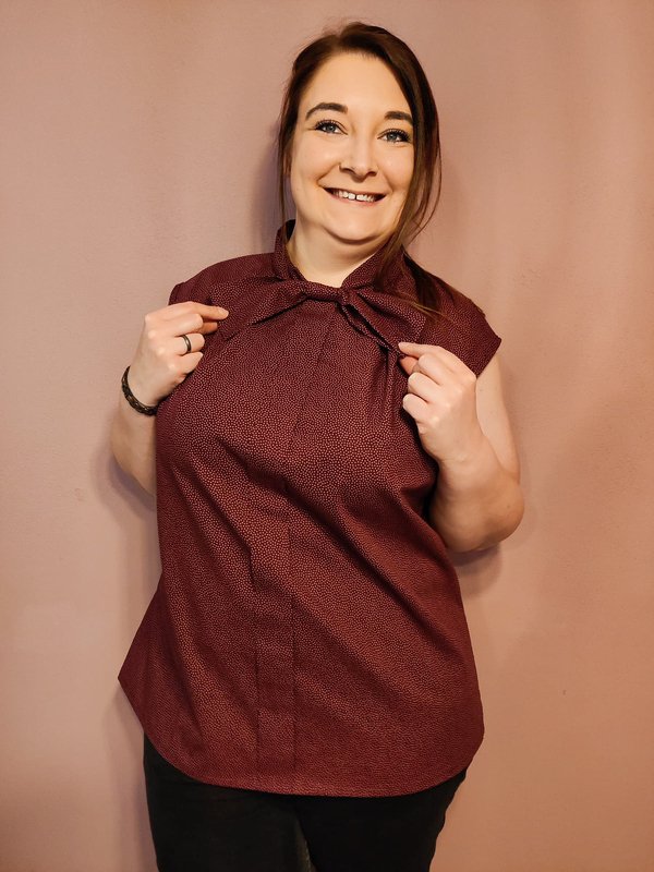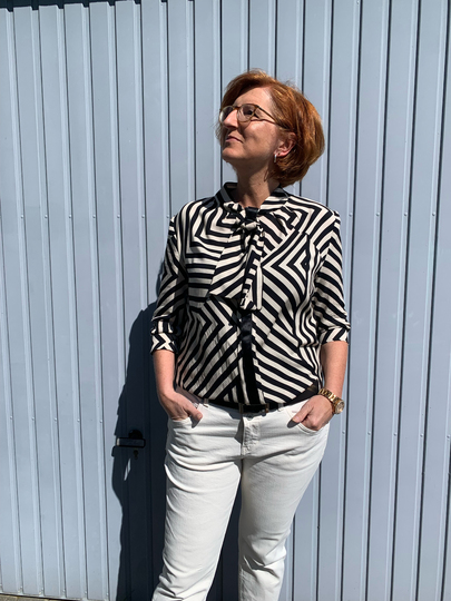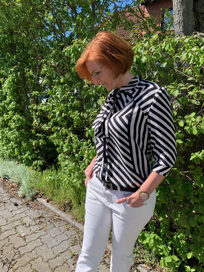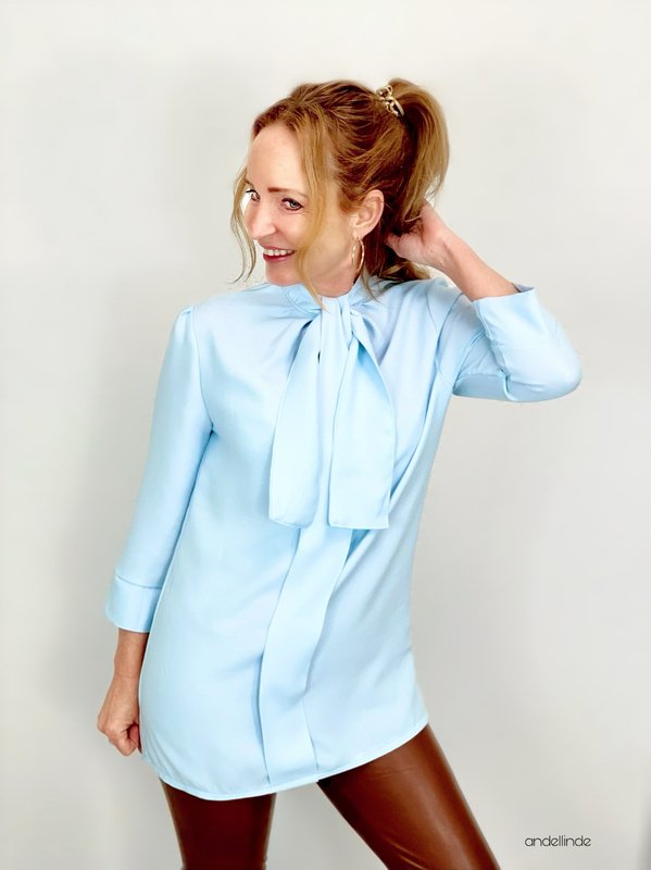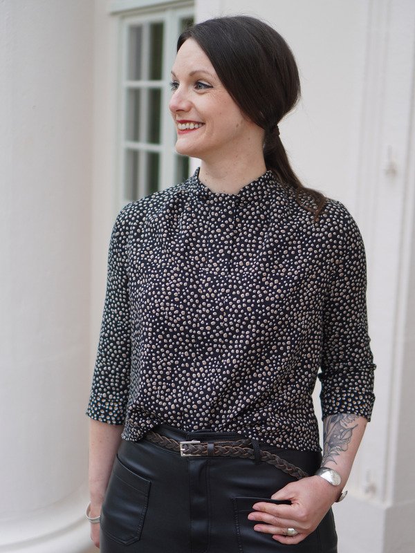 Zusammengefasst: Dieser Schnitt bietet dir eine Bluse, die du sowohl ärmellos, mit 3/4-Ärmel und einfacher Manschette als auch längärmelig mit Manschette und Schlitz nähen kannst. Die Falte im Vorderteil kann unterschiedlich gestaltet werden und die Schluppe ist ein optionales Detail. Durch die in die Falten gedrehten Abnäher, erspart es dir das Nähen eines Abnähers, ohne dass du auf die Vorzüge bzgl. der Passform verzichten musst.