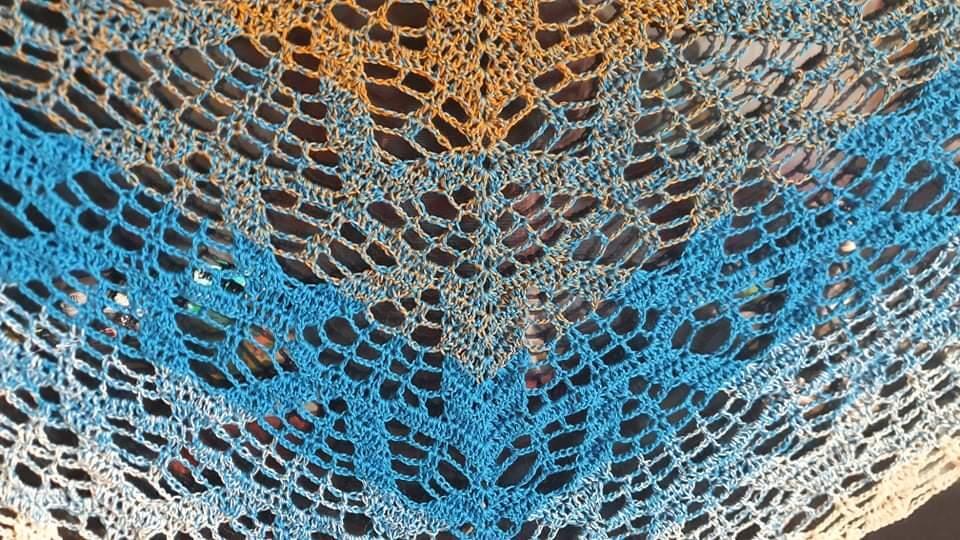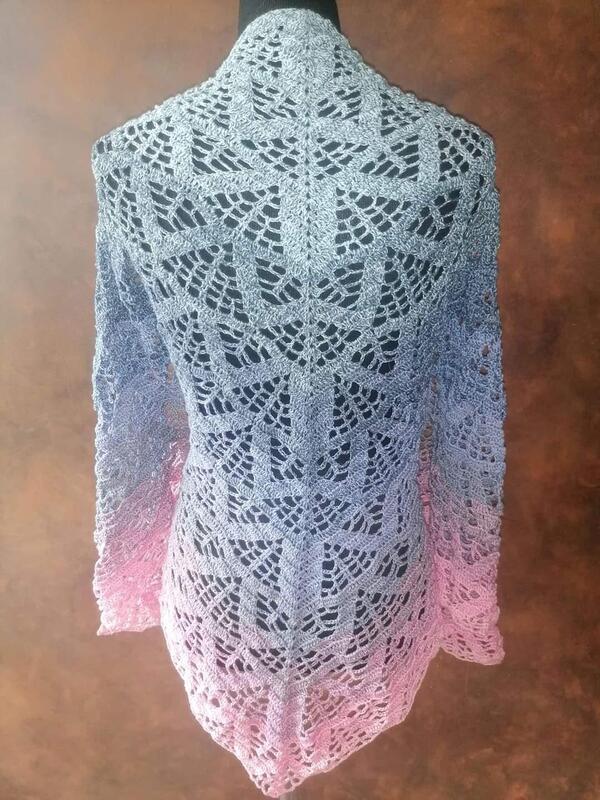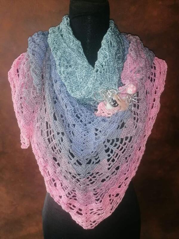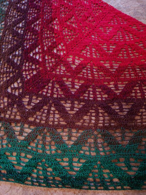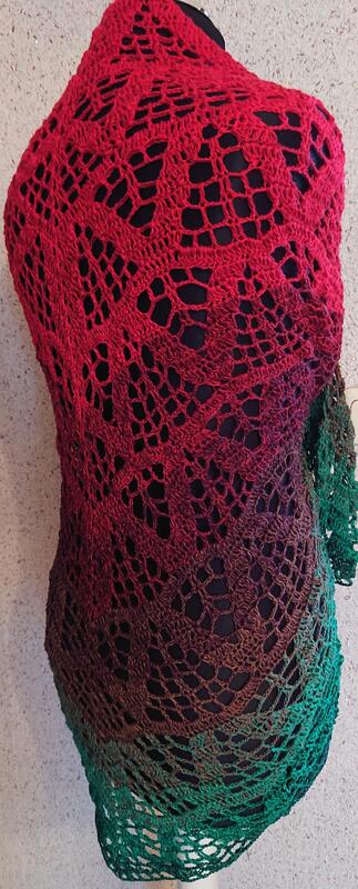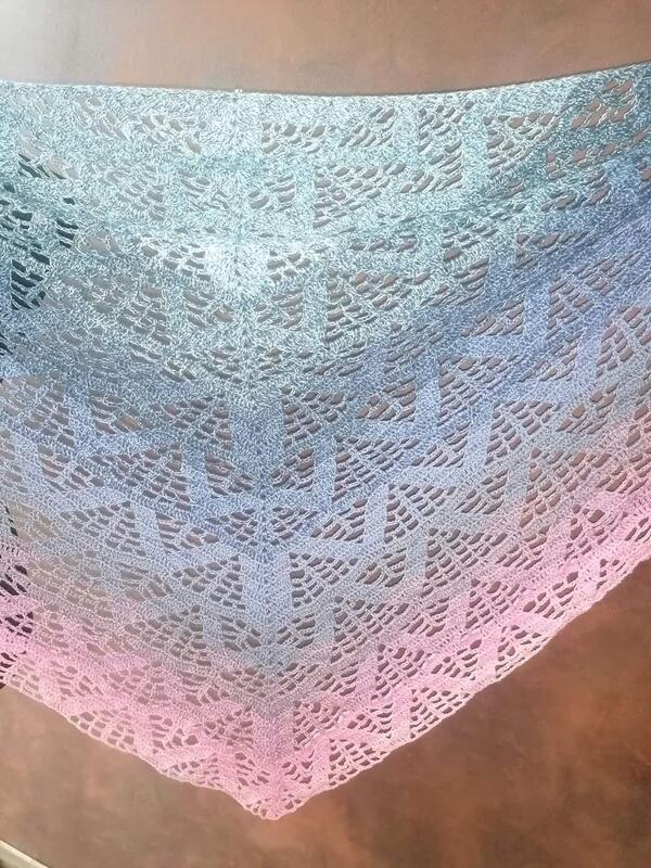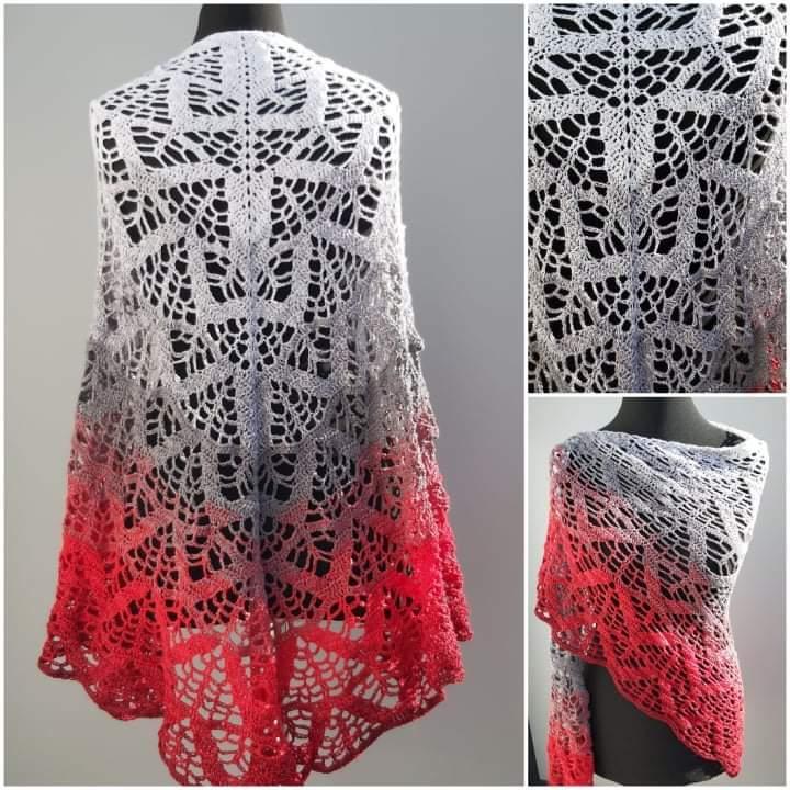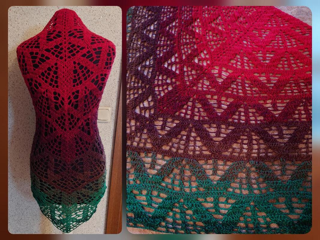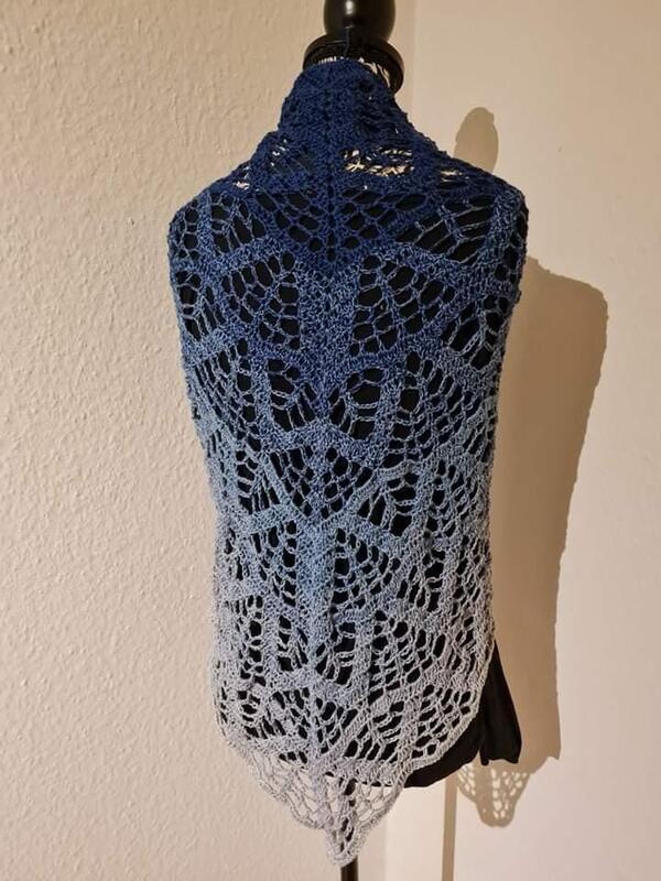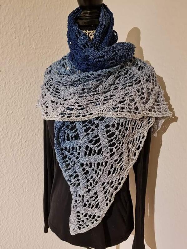 Die Anleitung zum Tuch besteht aus schriftlich ausformulierten Reihen und beinhaltet Häkelschriften.