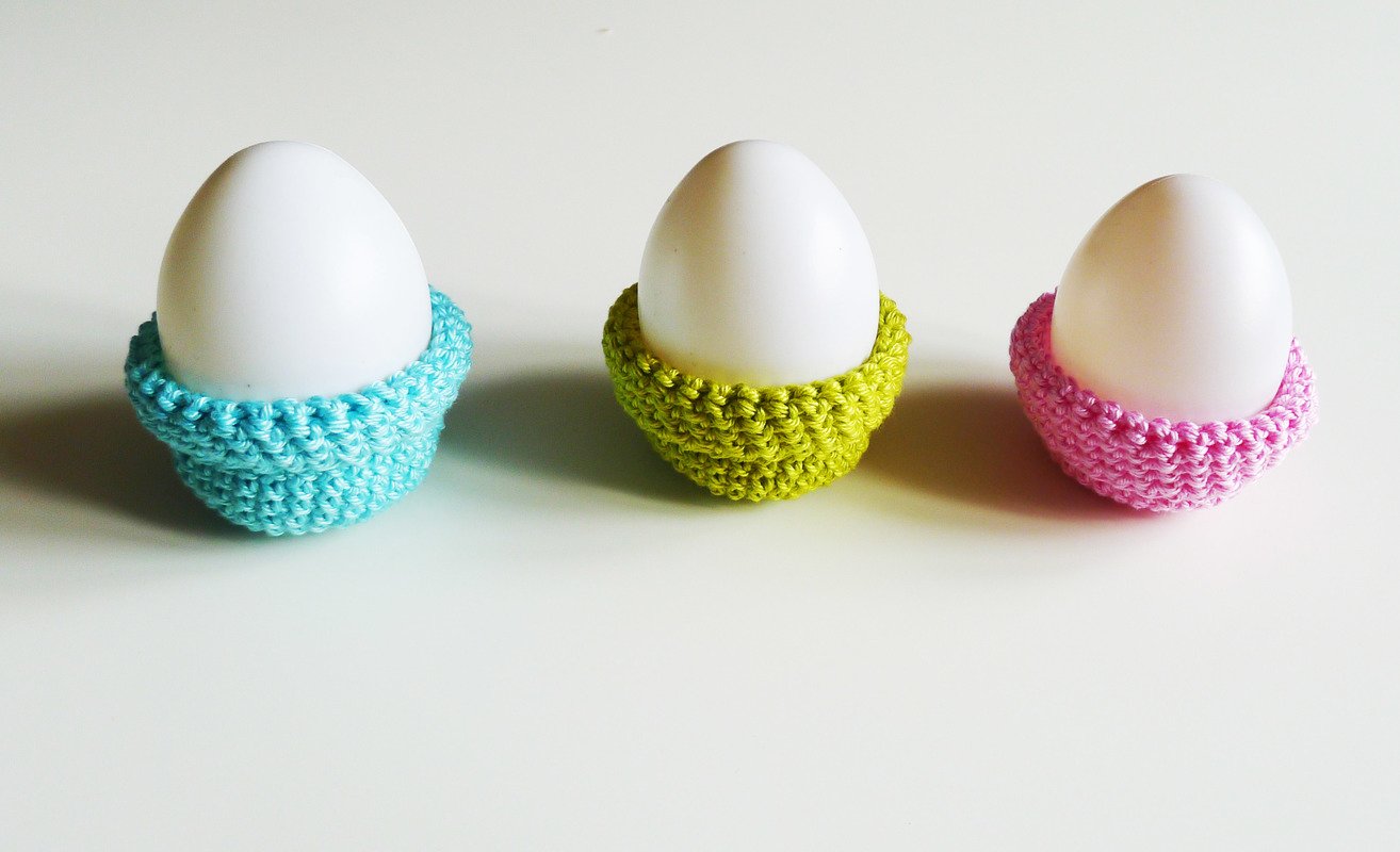 wie Du ganz einfach süße Ostereier für den Osterstrauch, Eierbecher und bunte Eierwärmer häkelst.