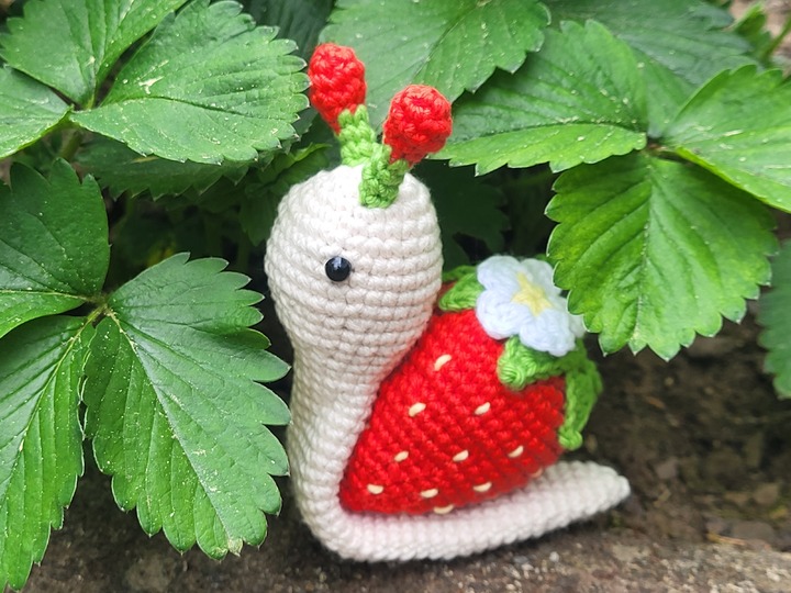 Soeben habe ich sie in meinem Garten entdeckt, die Erdbeerschnecke "Erna".