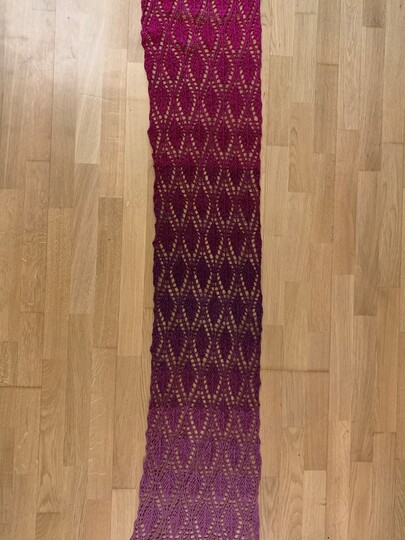 Der Schal auf den Fotos hat folgende Abmessungen: 35 x 166 cm.