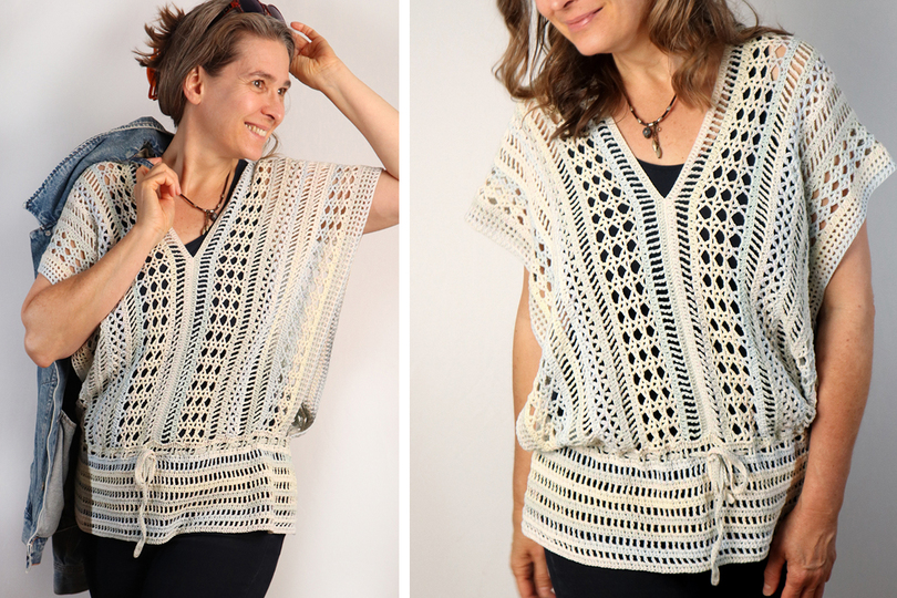 Du kannst die Tunika natürlich auch nach deinen Wünschen verlängern, dann erhältst du ein lässig leichtes Kleid bzw. Minikleid.