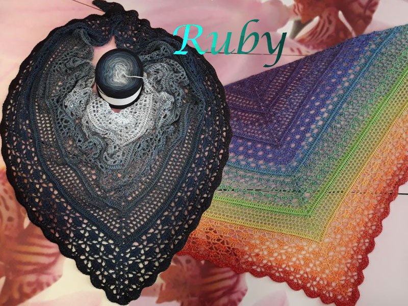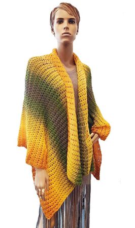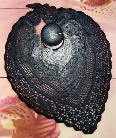 Klassisches Dreieckstuch, das von der Mitte nach außen gehäkelt wird.
