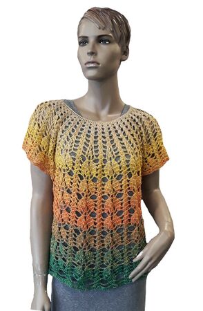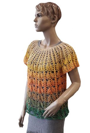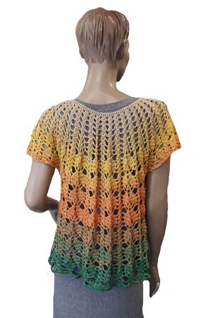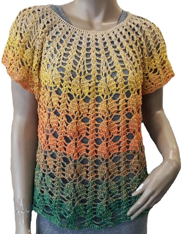 Das Shirt wird von oben nach unten in Runden gehäkelt. Durch die Rundpasse ist es einfach für jede Größe anpassbar. Die Anleitung ist für Größe 36 bis 54 geschrieben.