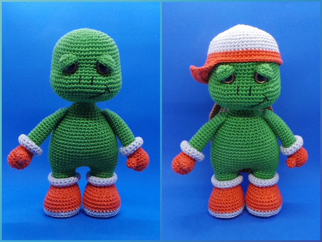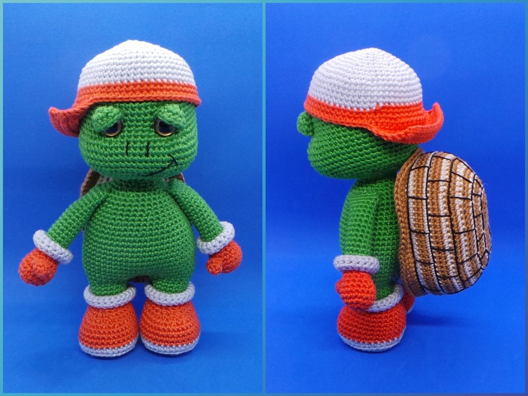 Schildkröte Susi wird mit den angegebenen Materialien ca. 21 cm groß vom Kopf bis zu den Füßen.