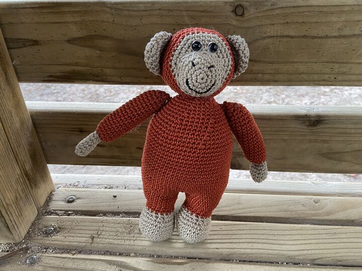 Unter Verwendung des angegebenen Materials wird Odie Orang-Utan ca. 24 cm groß.