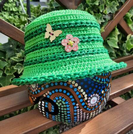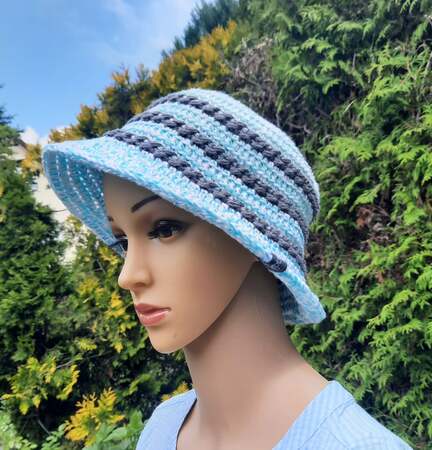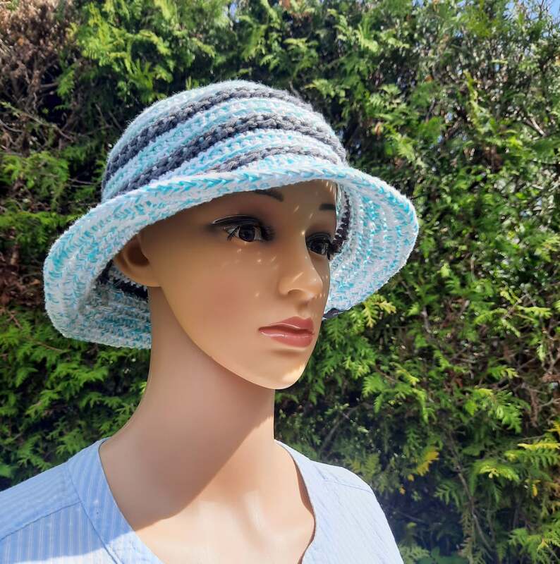 Ein schicker gehäkelter Fischerhut bzw Sonnenhut.