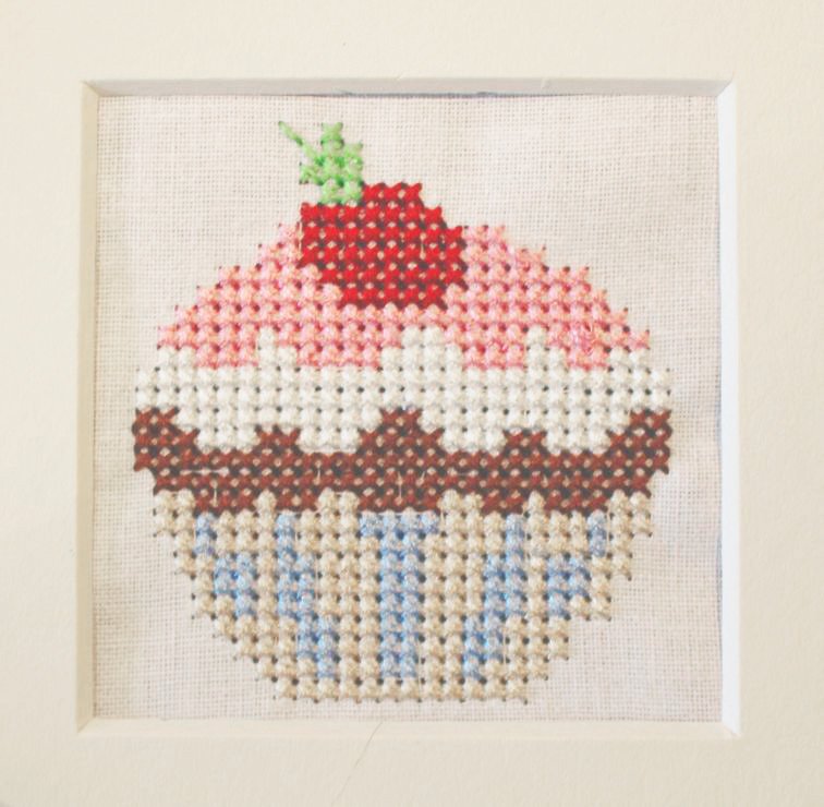 Stickdatei im Kreuzstich: 4 bunte Cupcakes