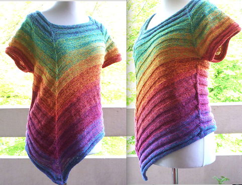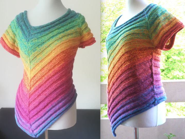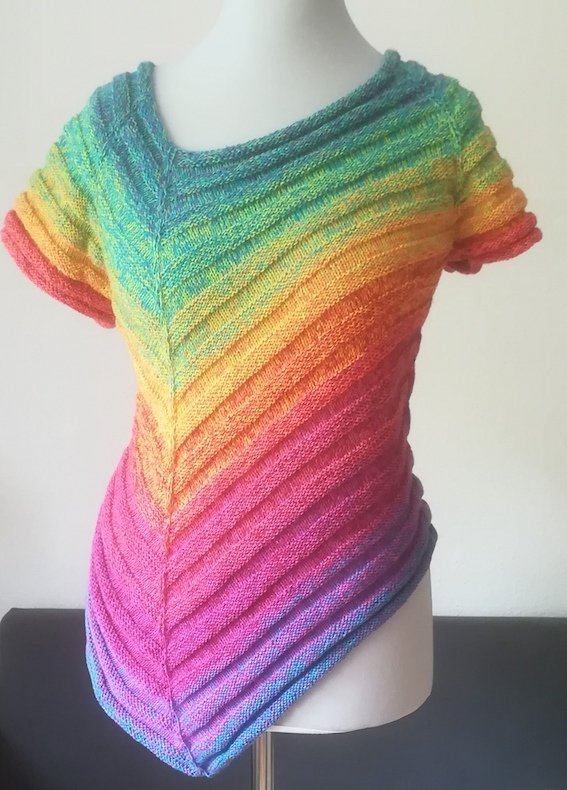 Die abgebildete Variante hat Größe 42/44, und ist an der vorderen Spitze ca. 75 cm lang. Ich habe hier etwas über 900 m verbraucht – von Lady Dee’s „Hippie Lady Shakira“.