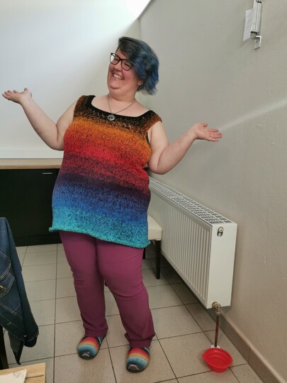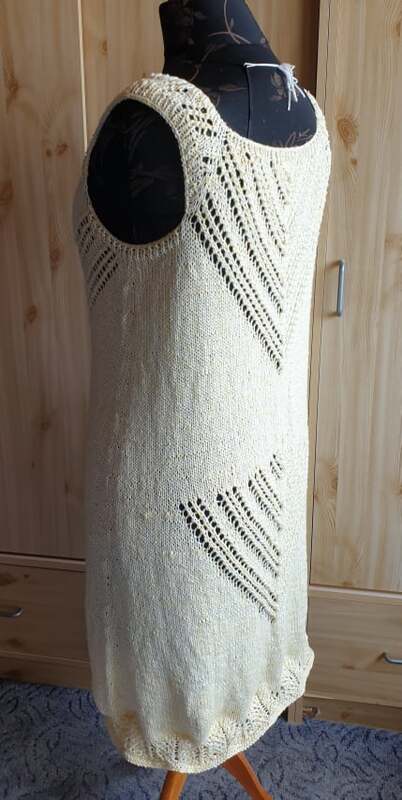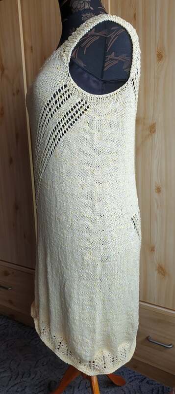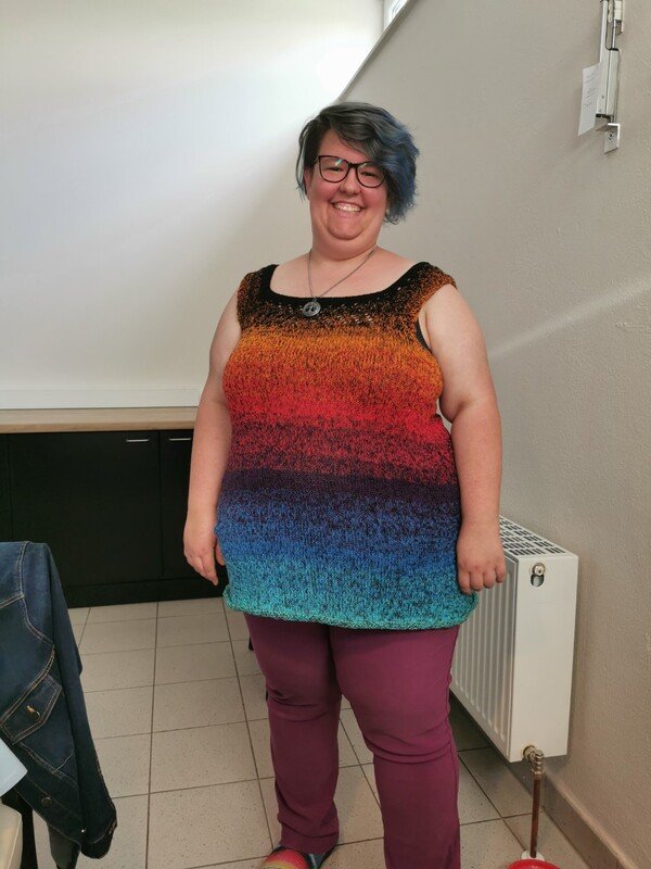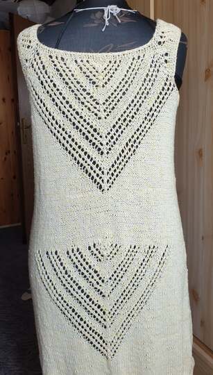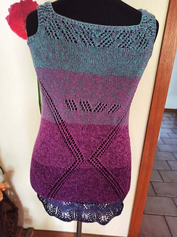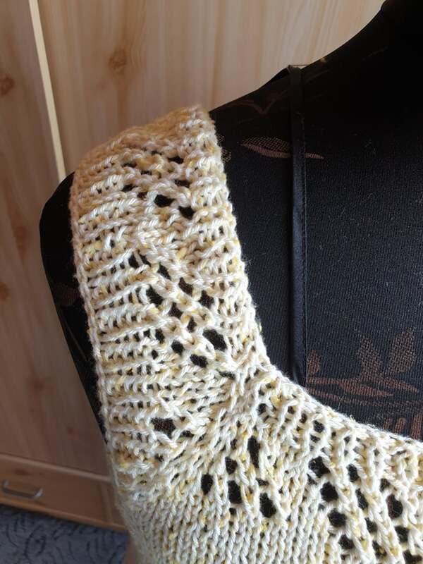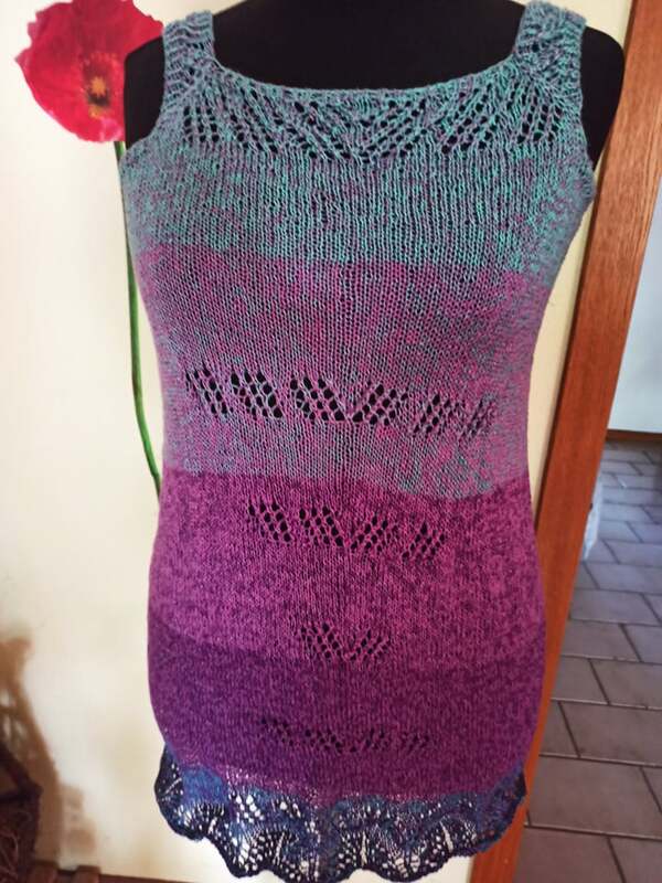Das heisst: es wird im Ausschnitt begonnen und nach wenigen Reihen werden die Träger abgeteilt. Nach einer weiteren Maschenaufnahme wird einfach in Runden weiter gestrickt, wie es jede(r) mag. So kann aus einem anfänglichen Top auch schnell mal ein Trägerkleid werden, das nicht nur im Sommer eine gute Figur macht.