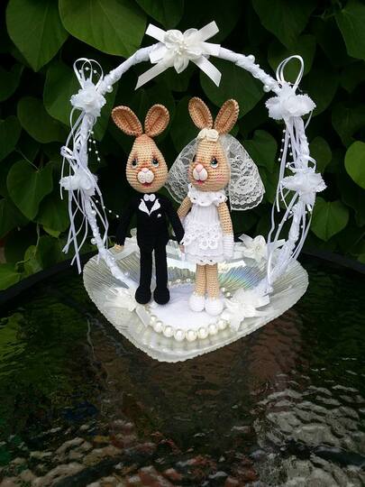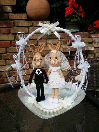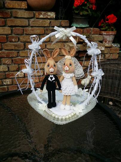 Dieses Hasen Brautpaar passt zu jeder Hochzeit als Dekoration oder Geschenk, wer sie bekommt wird überglücklich sein.