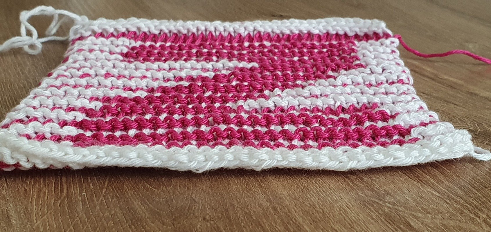 Dabei habe ich 33 Maschen aufgenommen und 23 Hin- und Rückreihen gestrickt.