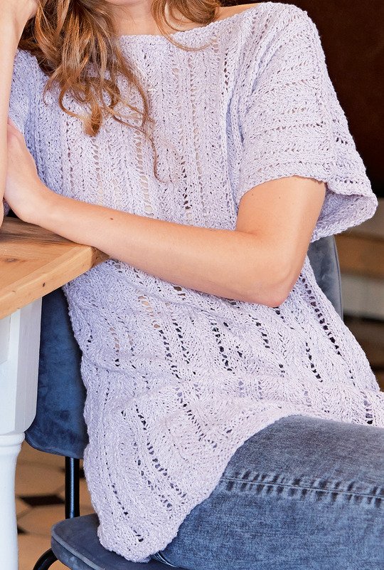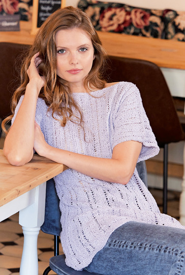 Ein Hauch von Romantik! Der zarte Lavendelton dieser femininen Tunika bringt Ruhe ins Maschenspiel, ob zur Jeans oder zum romantischen Blümchenkleid kombiniert. Die dezente A-Linie mit überschnittenen Schultern und die angestrickten Ärmel dieses Longpullis in verschiedenen Ajour-Rippenmustern unterstreichen den enstpannten Look. Mit dem Pulli aus reiner Baumwolle kommen Sie auch an heißen Tagen gut durch den Tag. Die einfach zu strickenden Lochstreifen werden nach genauen Strickschriften gearbeitet. Das Modell ist absolut anfängerfreundlich und auch von Strickerinnen mit wenig Strickerfahrung zu meistern. Mit dieser Strickanleitung kannst du die Tunika in den Größen 36/38, 42 und 46/48 stricken.
