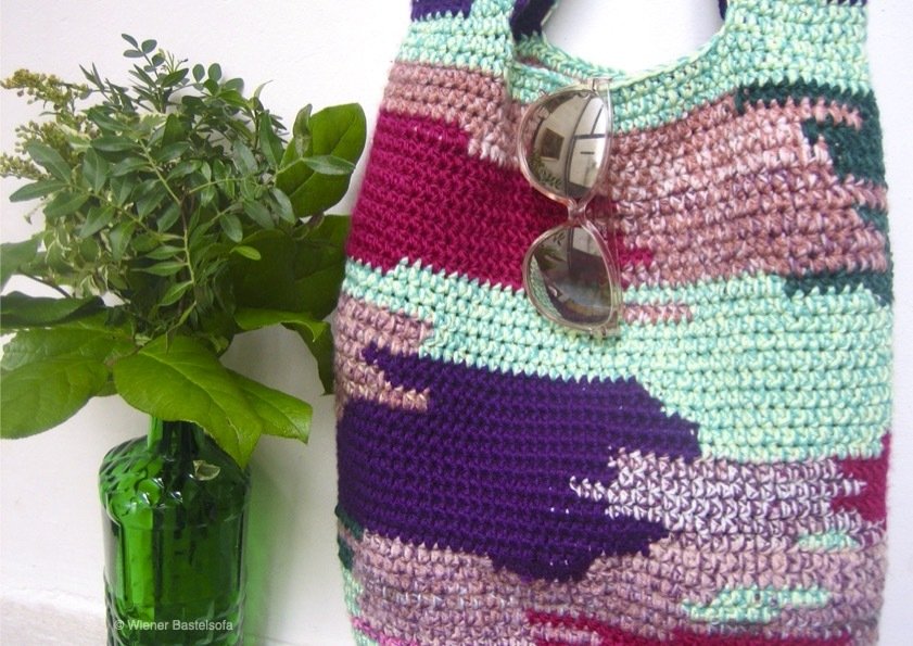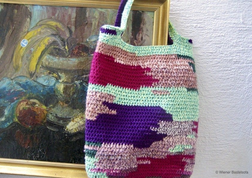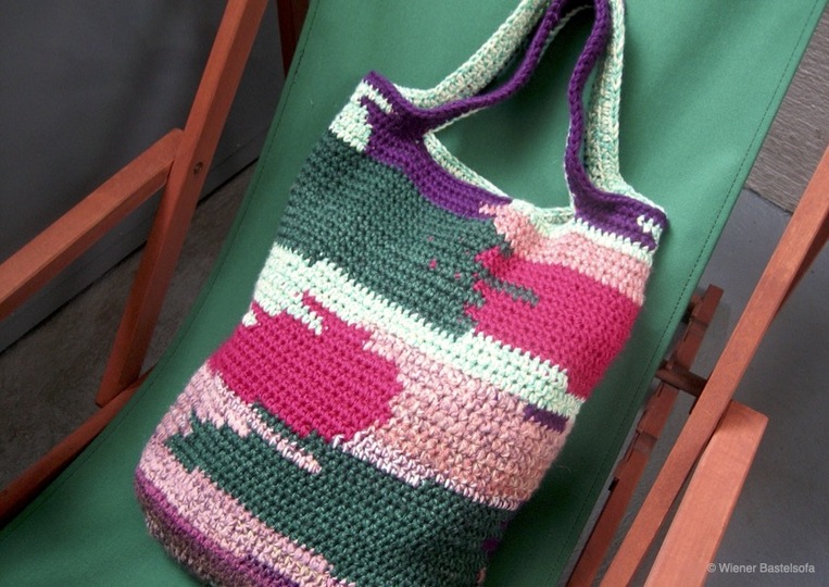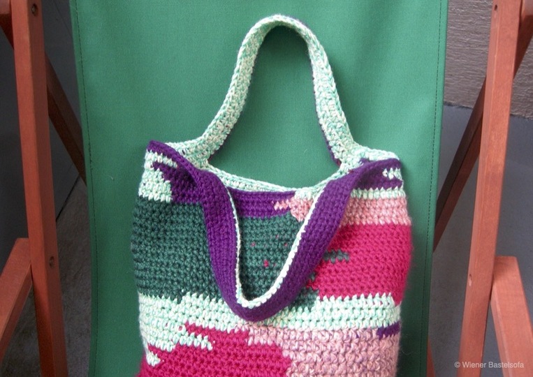 Für diese fröhliche und stabile Tasche kannst du auch kleinste Reste verwerten. Und das Gute dabei ist... die vielen Enden werden alle mitgeführt, es muss nur der Endfaden der Tasche vernäht werden.