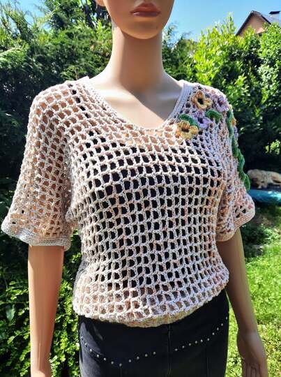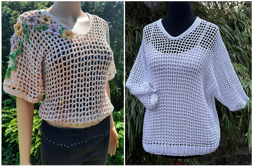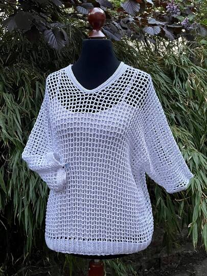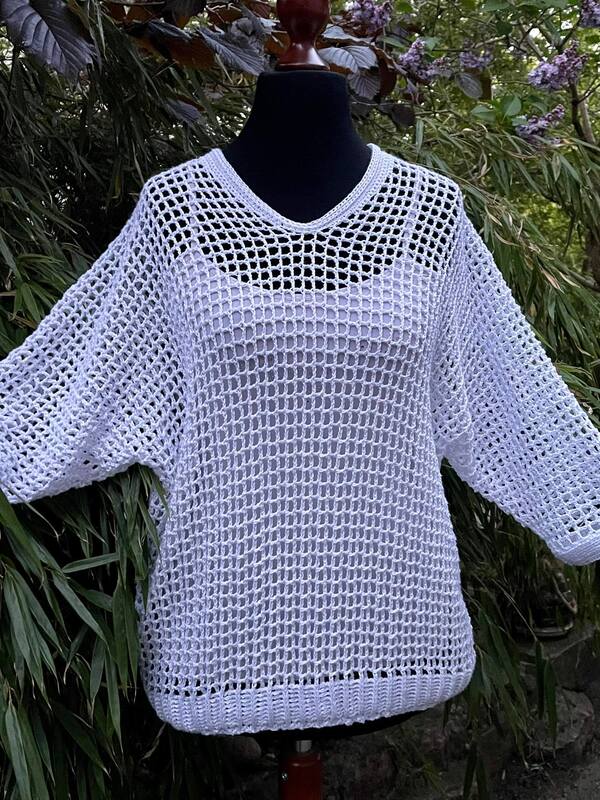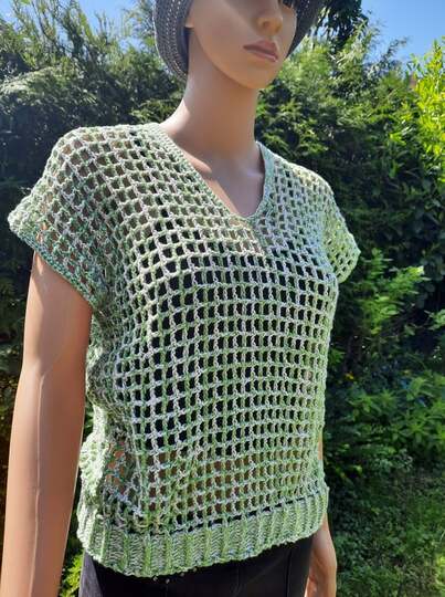 Das Teilchen kann ärmellos oder mit gewünschter Ärmellänge gehäkelt werden.